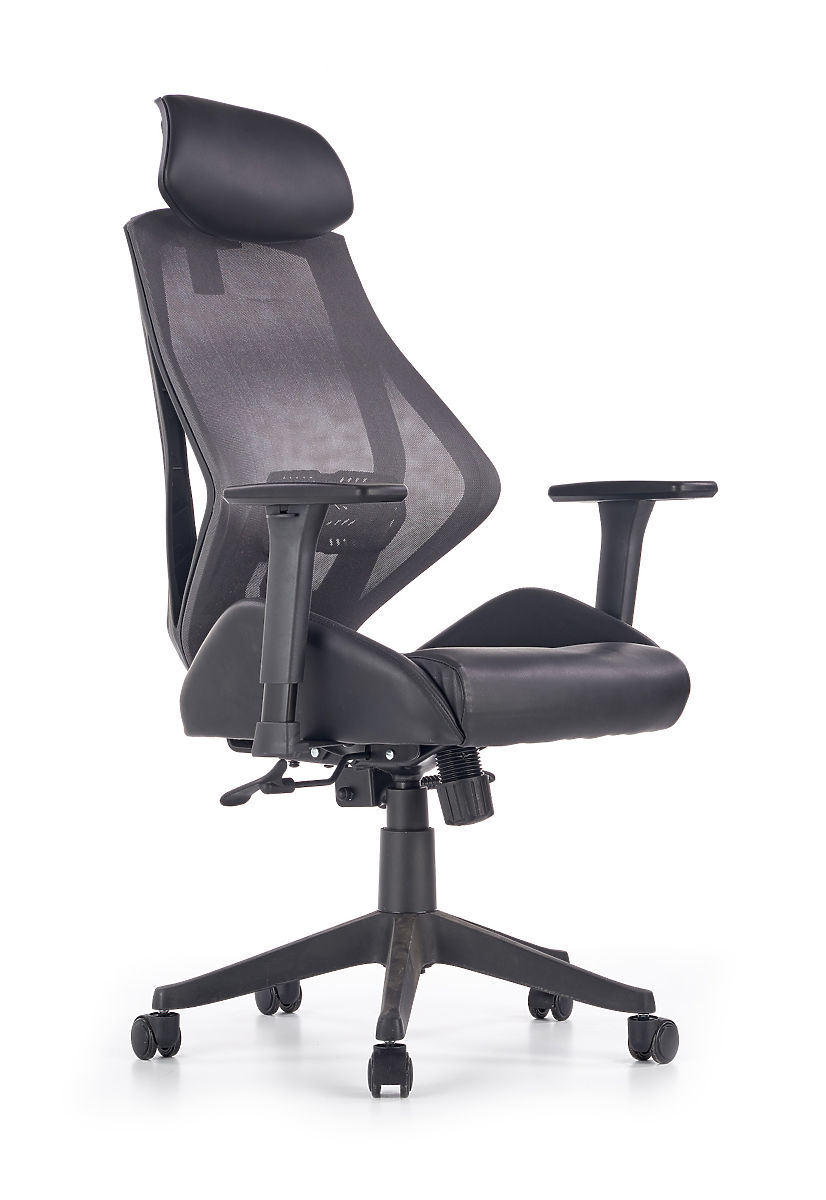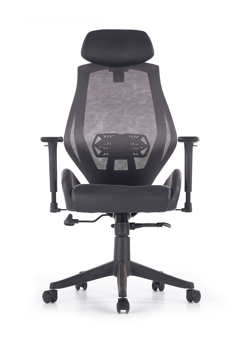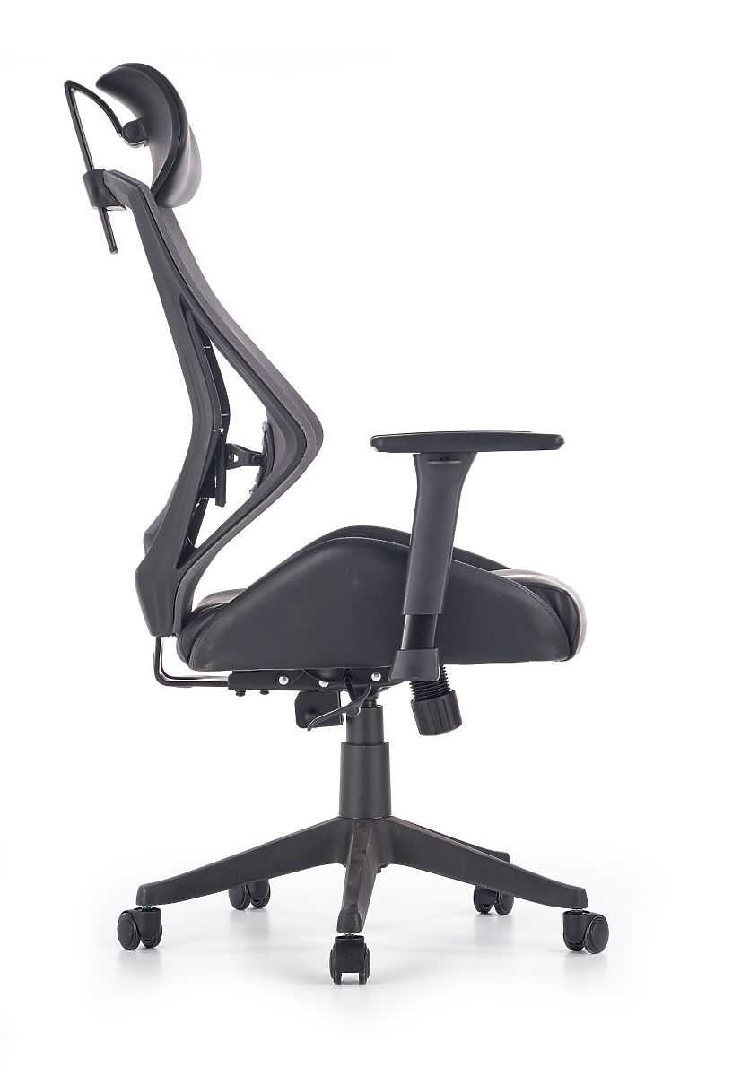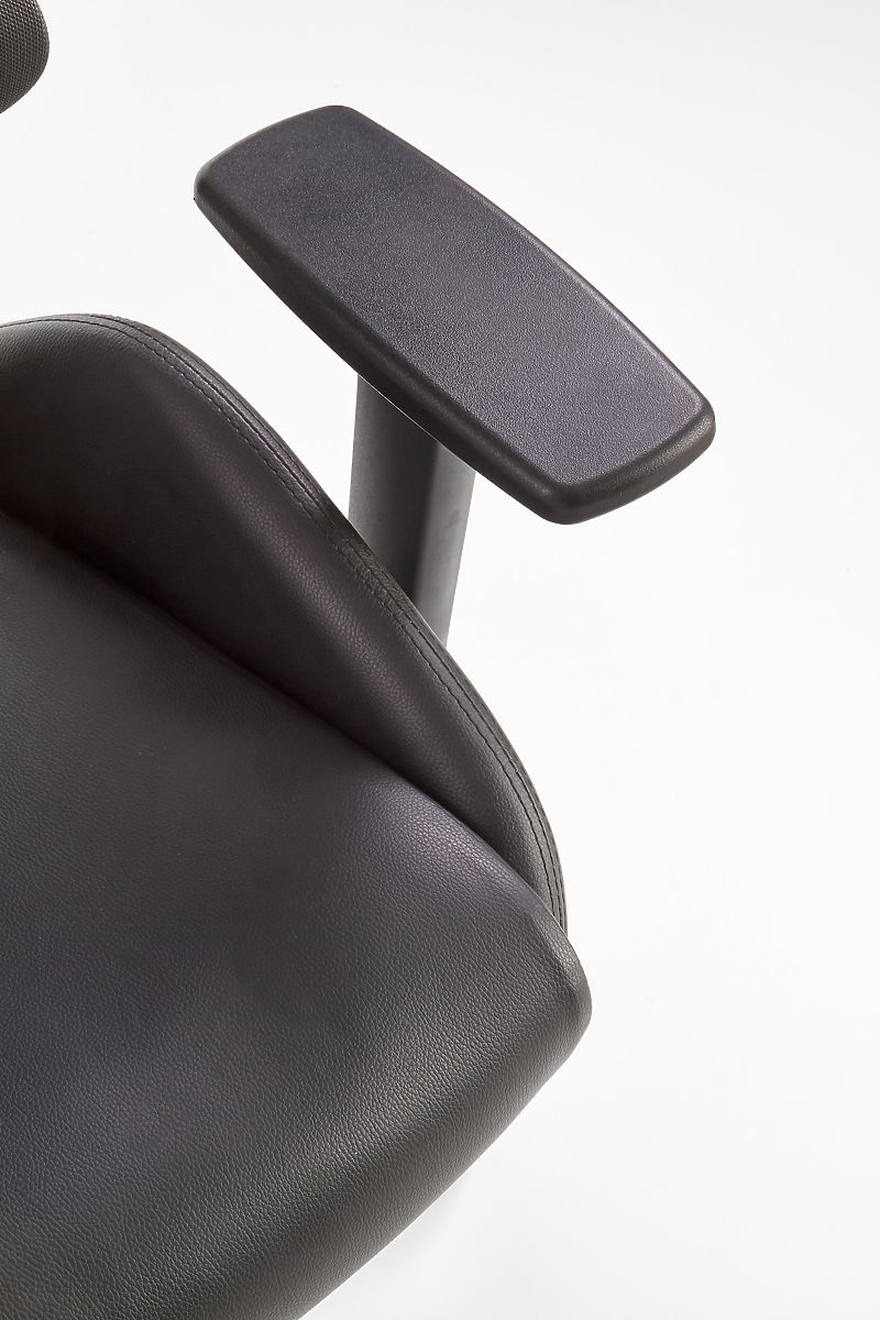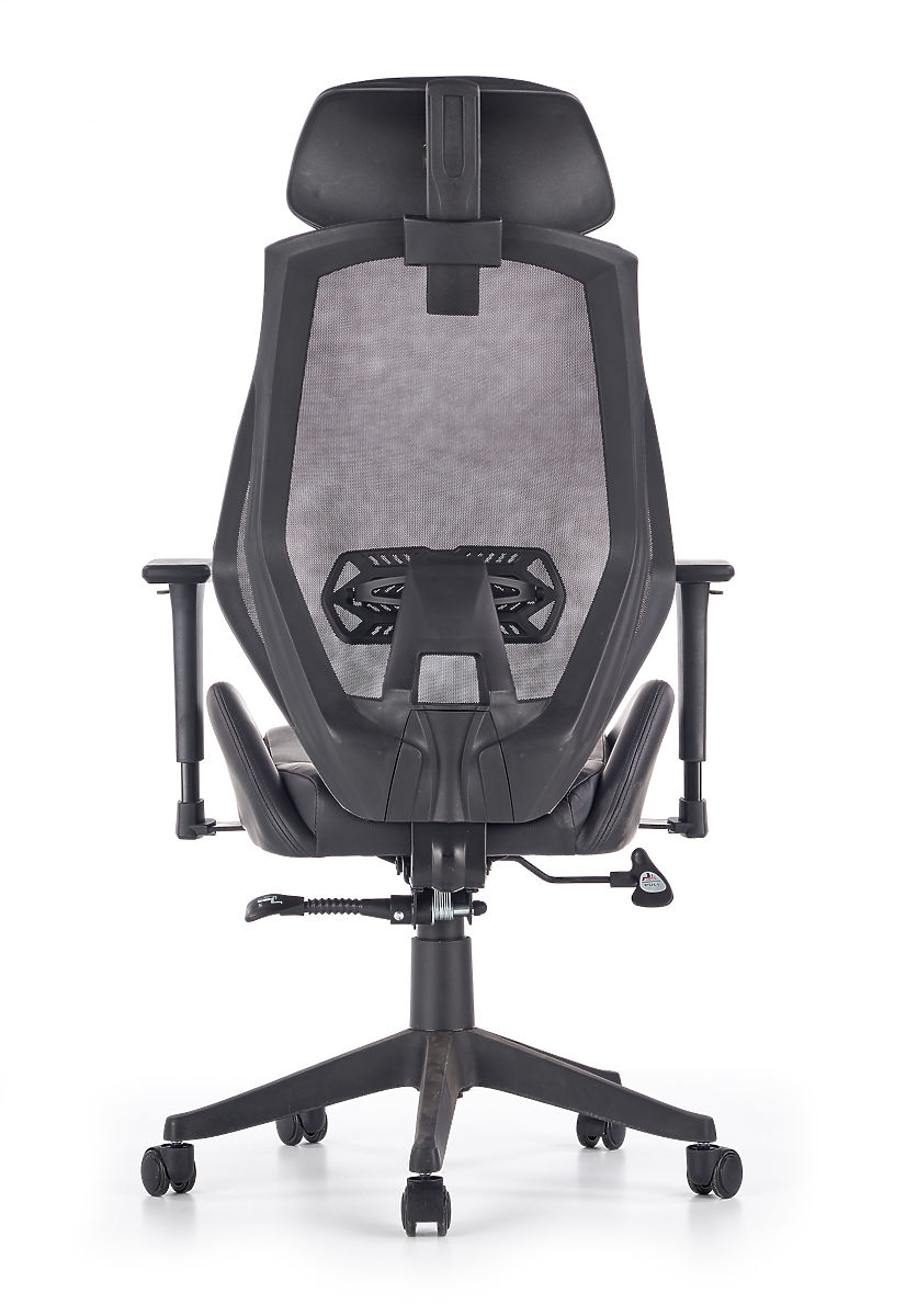 Multiblock mehanizam nudi mogućnost ljuljanja, čiju krutost možete sami regulirati. Ergonomski oblikovan naslon za leđa i naslon za glavu presvučeni su prozračnom mrežicom, dok je sjedište stolice presvučeno eko kožom crne boje. Naslon je dodatno opremljen lumbalnom potporom koja osigurava zdravo sjedenje zajedno s podesivim naslonima za ruke. Konstrukcija je izrađena od čvrste plastike.