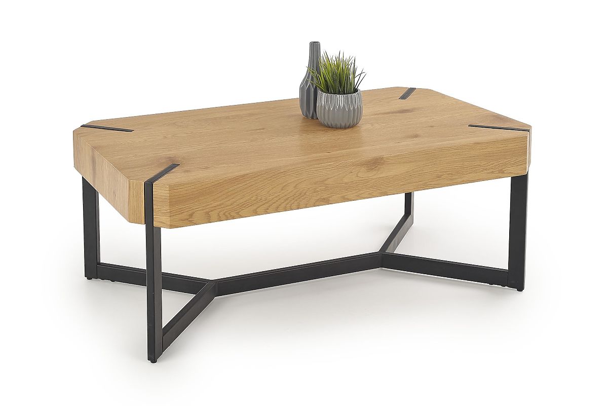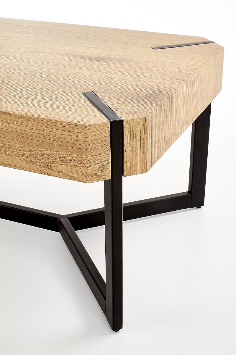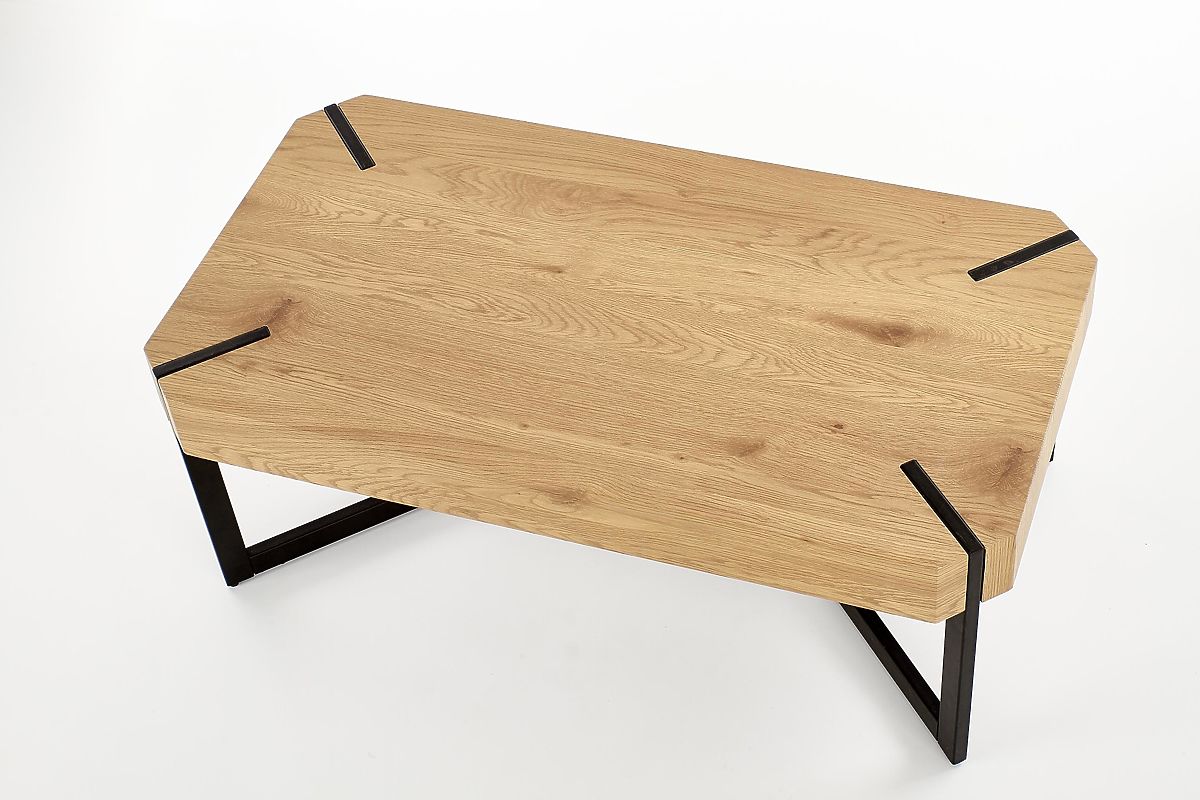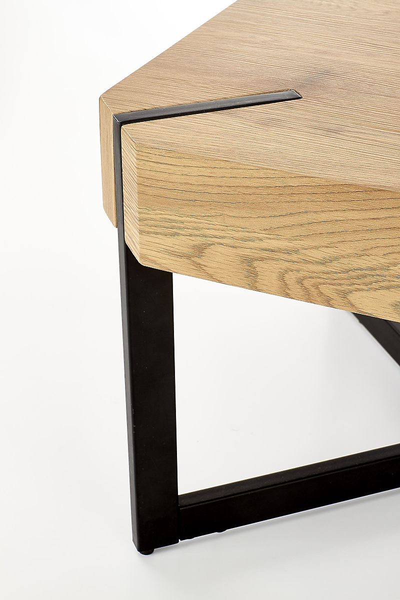 Ploča stola izrađena je od laminirane MDF ploče u boji zlatnog hrasta. Konstrukcija je od crno obojanog čelika.