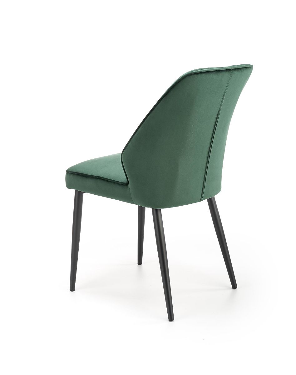 Sjedalo i naslon presvučeni su ugodnom baršunastom tkaninom tamno zelene boje. Konstrukcija je izrađena od crno obojanog čelika.
