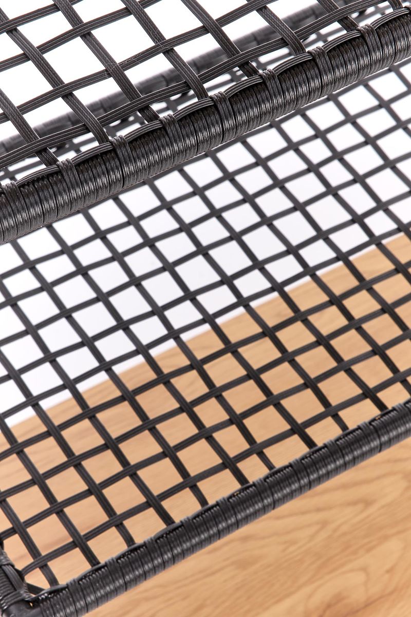 Police su izrađene od laminirane MDF ploče u boji zlatnog hrasta i sintetičkog ratana. Konstrukcija je izrađena od crno obojanog čelika s praškastim premazom.