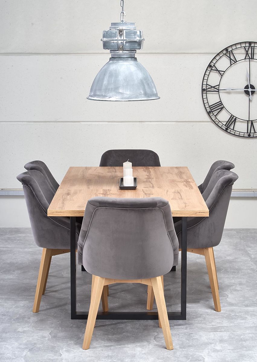 Ploča stola izrađena je od laminirane MDF ploče u nijansi hrasta wotan. Noge stola su od crno obojane čelične konstrukcije.