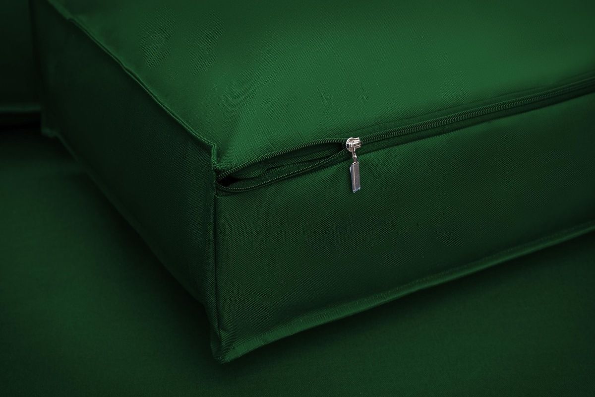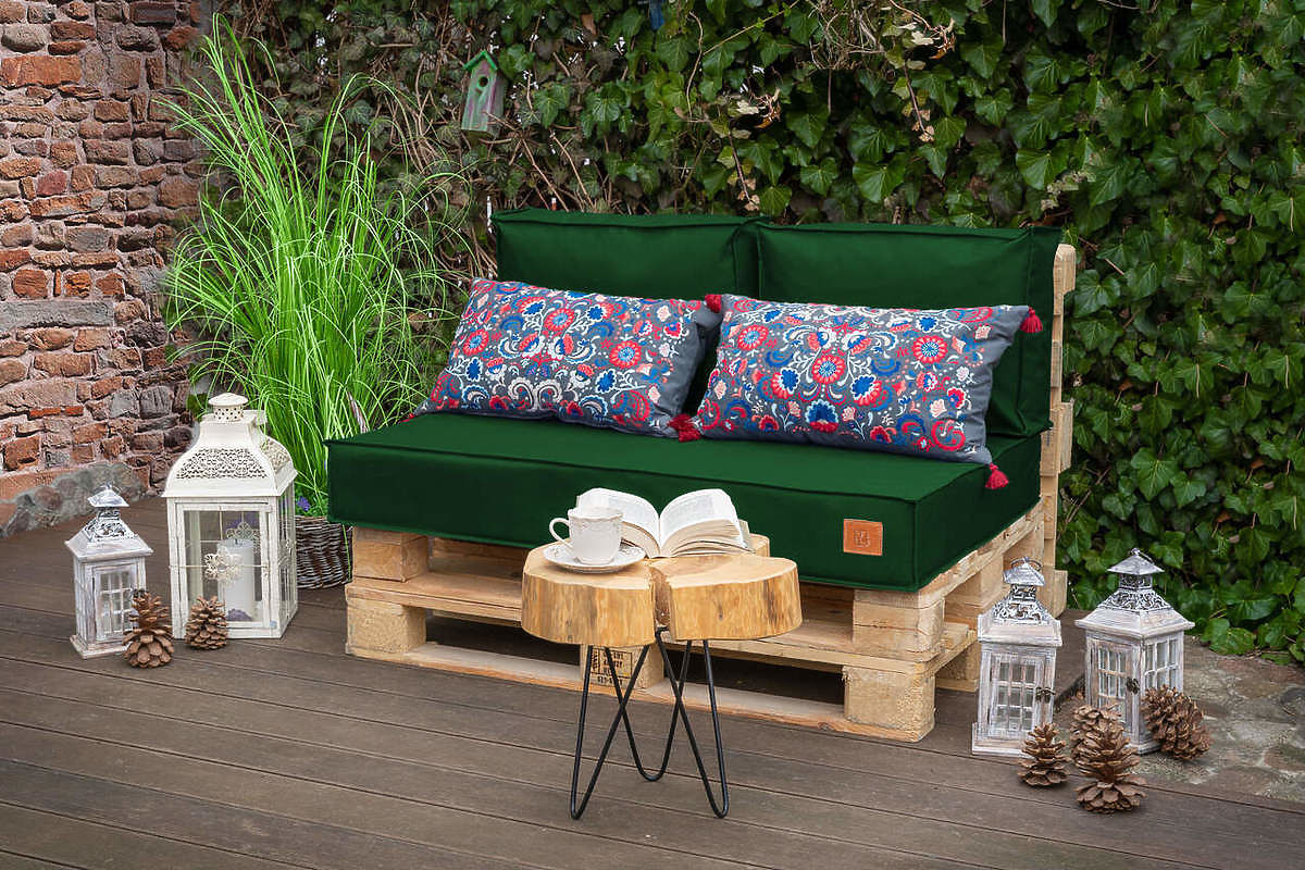 Zeleni set jastuka za namještaj od paleta odličan je izbor za jednostavno oplemenjivanje sjedećih mjesta na terasi, balkonu ili u vrtu. Idealno pripremljen za dimenzije europaleta. Posebna tehnologija šivanja osigurava UV otpornost i vodootpornost materijala, zahvaljujući čemu materijal ostaje čvrst i ne blijedi.
