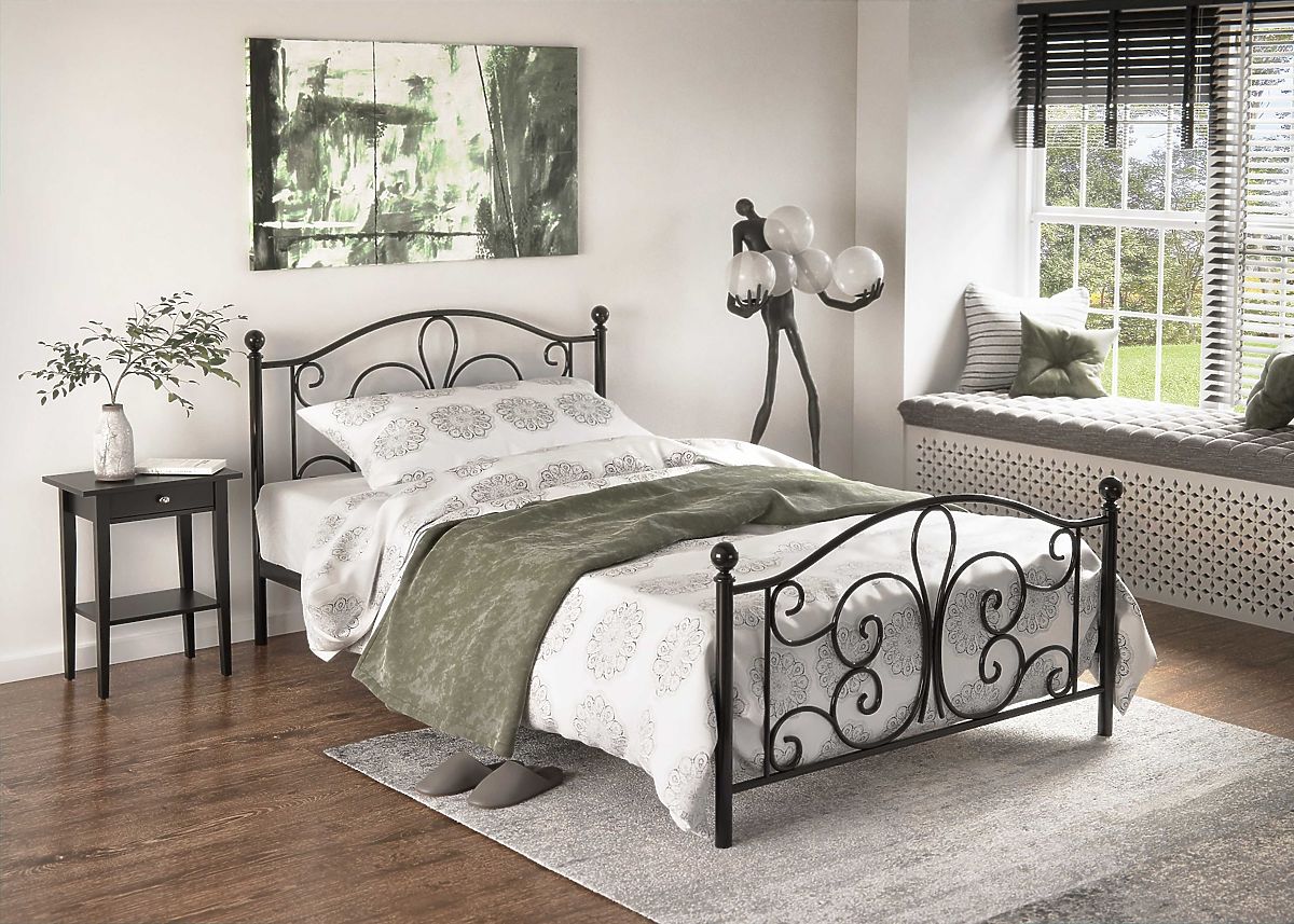 Crni metalni krevet Panama dimenzija 120x200 cm, elegantan, moderan i moderan, zanimljivog je dizajna, a zahvaljujući svojim dimenzijama pogodan je ne samo za studentsku sobu , već i za spavaću sobu .
