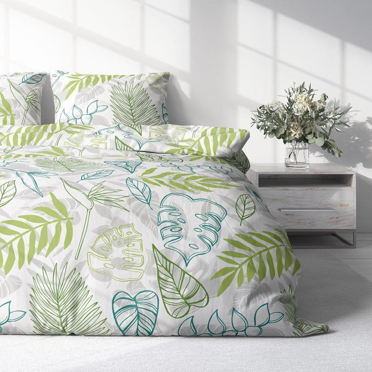 Svježi dašak prirode u vašu spavaću sobu unijet će ova prekrasna posteljina s motivom velikih listova biljaka. Zahvaljujući mekanoj mikrofibri od koje je posteljina izrađena, san će biti ugodan i ugodan kao nikada do sada. Boje posteljine zadržavaju svoju zasićenost i intenzitet i nakon nekoliko pranja. Praktični patentni zatvarač garantirano olakšava prekrivanje jastuka i popluna.