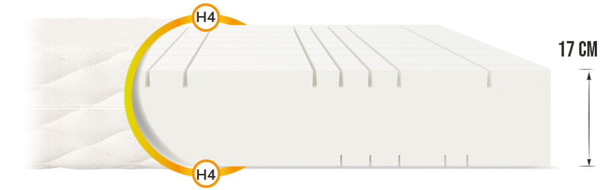 Ako tražite univerzalni pjenasti madrac za cijelu obitelj, GOYA visine 17 cm je izvrstan izbor. Njegova konstrukcija je jednostavna jer je izrezana iz jednog komada pjene, a ipak ima mnogo prednosti. Obostrani madrac je podijeljen u 7 zona zahvaljujući nizu uzdužnih i poprečnih rezova. To dovodi do značajnog povećanja plastičnosti, koja pruža izvrsnu potporu kralježnici i stoga ćete se buditi osvježeni i puni energije. Madrac GOYA odlikuje se vrlo dobrim omjerom cijene i performansi. Elastičan je i vrlo izdržljiv.