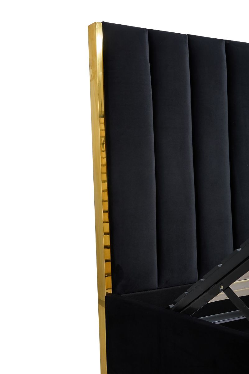 Tapecirani krevet PALAZZO spoj je luksuza i praktičnosti. S dimenzijama od 160x200 cm, pruža dovoljno prostora za udobno spavanje dvije osobe, a nudi i skriveni prostor za odlaganje zahvaljujući podiznoj rešetki. Crna presvlaka kreveta Palazzo dodaje elegantan i moderan izgled vašoj spavaćoj sobi. Visoko uzglavlje Palazzo dodaje luksuznu atmosferu i postaje privlačan element vašeg interijera.