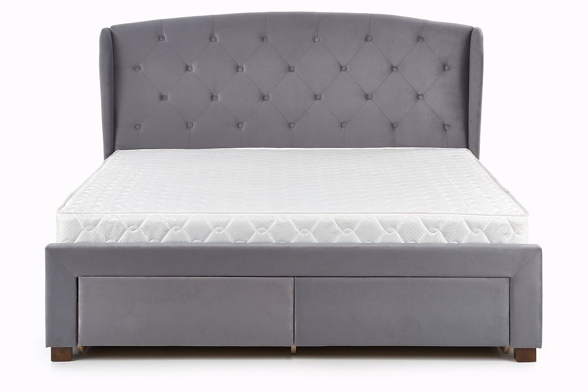 Tapecirani krevet Sabrina donosi luksuzan ugođaj i praktičnost u vašu spavaću sobu. S dimenzijama od 160x200 cm, pruža dovoljno prostora za ugodan san, a istovremeno nudi prostor za pohranu zahvaljujući integriranim ladicama. Tamnosiva presvlaka krevetu Sabrina daje elegantan i moderan izgled. Prednost je kvalitetna letvičasta rešetka koja se nalazi u paketu.