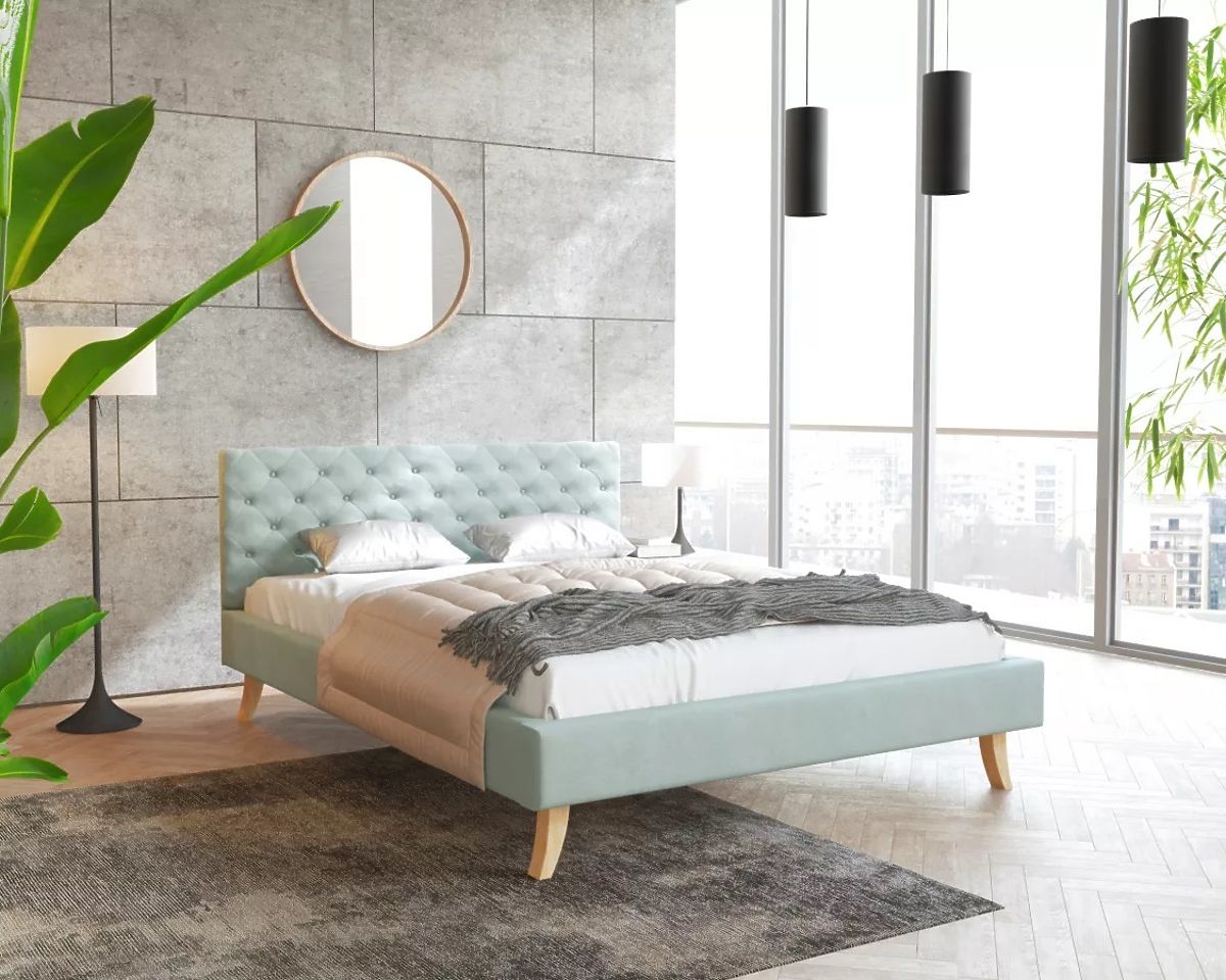 Luxuzni tapecirani krevet Kalifornia dimenzija 140 x 200 cm zadovoljit će zahtjeve i najzahtjevnijih klijenata. Budući da se odlikuje bezvremenskim dizajnom, visokom funkcionalnošću i atraktivnim izgledom, krevet u mint boji izgleda sjajno u svakoj spavaćoj sobi.