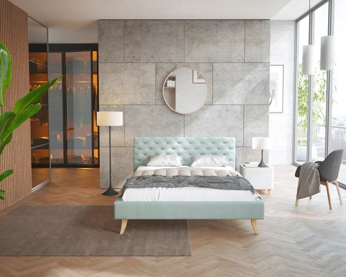 Prekrasan tapecirani krevet California u mint boji iznenadit će vas svojim bezvremenskim dizajnom, visokom funkcionalnošću i atraktivnim dizajnom. Ovaj udoban krevet dimenzija 180 x 200 cm izgledat će sjajno u svakoj spavaćoj sobi.