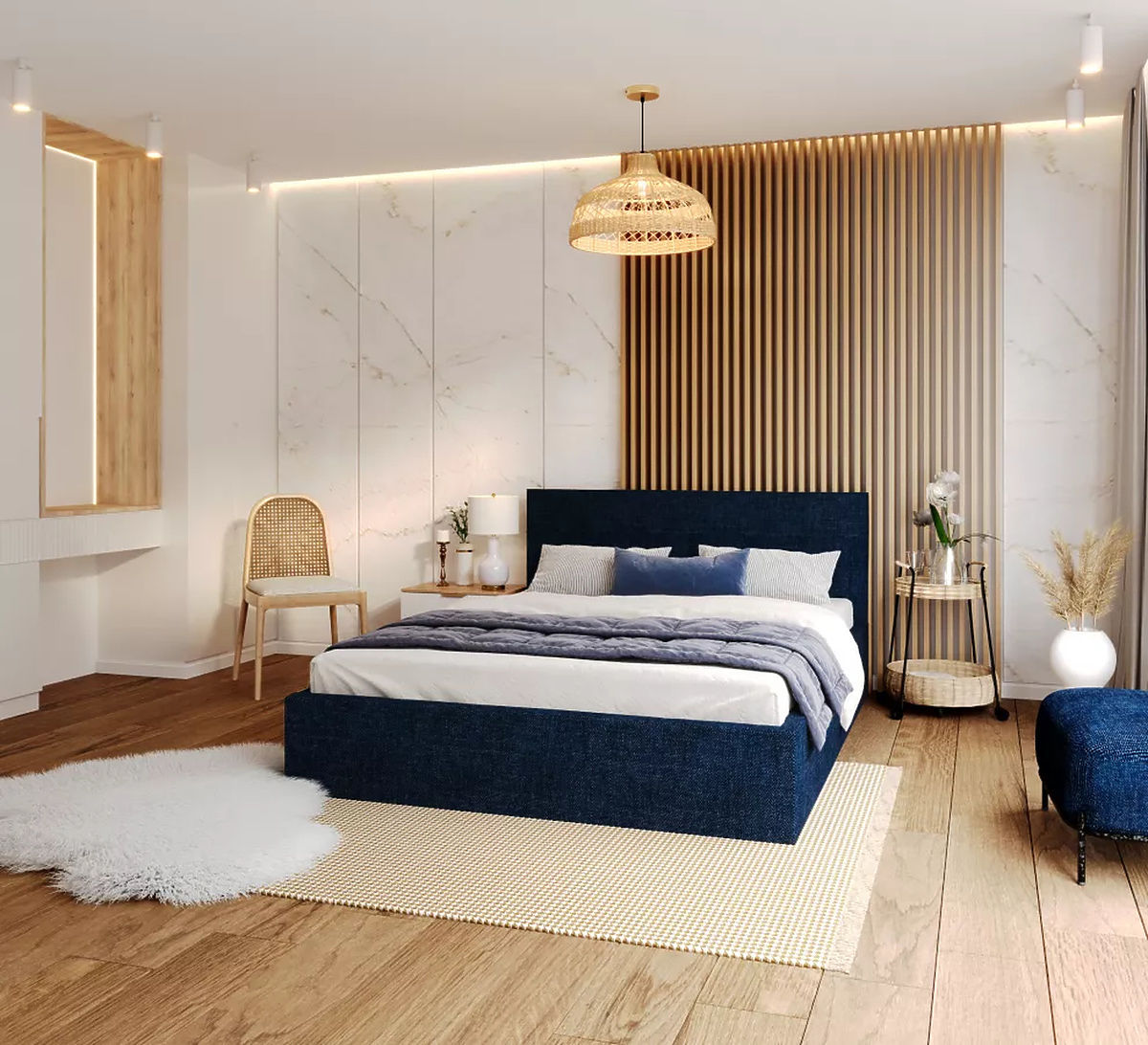Elegantan tapecirani krevet TULSA u tamno plavoj boji i dimenzija 120 x 200 cm prekrasan je komad namještaja koji ne samo da nudi udobnost spavanja, već i dodaje štih spavaćoj sobi zahvaljujući bezvremenskom dizajnu i atraktivnoj završnoj obradi. Tamnoplava je boja koja se povezuje sa smirenošću, samopouzdanjem i elegancijom. Ova boja može stvoriti umirujuću atmosferu i dati spavaćoj sobi osjećaj ugode. Tapecirano uzglavlje daje prostoru mekoću i eleganciju, a svojom veličinom dovoljno prostora za udobno spavanje dvije osobe.
