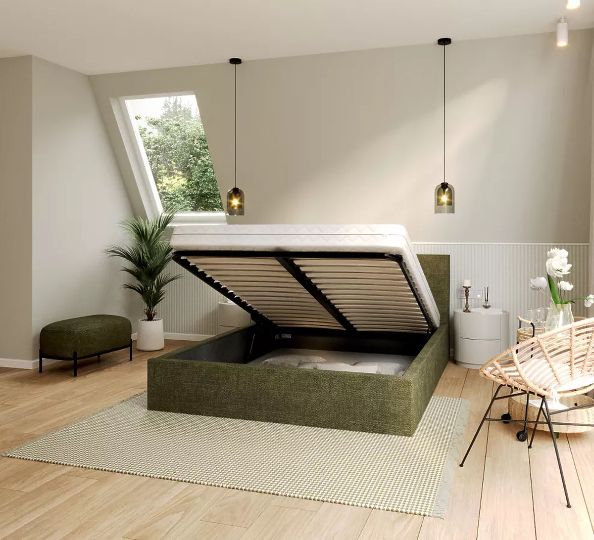 Krevet TULSA u maslinastozelenoj boji i dimenzijama 180 x 200 cm zasigurno nudi izvrsnu kombinaciju elegancije i udobnosti za vašu spavaću sobu. Veličina kreveta pruža dovoljno prostora za slobodno kretanje tijekom noći, što je ključno za kvalitetan san, posebno za parove. Dovoljno prostora omogućuje udobno spavanje oba partnera bez ikakvih ograničenja. Maslinasto zelena boja unosi mir i harmoniju u prostoriju, što je izvrstan način za stvaranje opuštajućeg okruženja u vašoj spavaćoj sobi.
