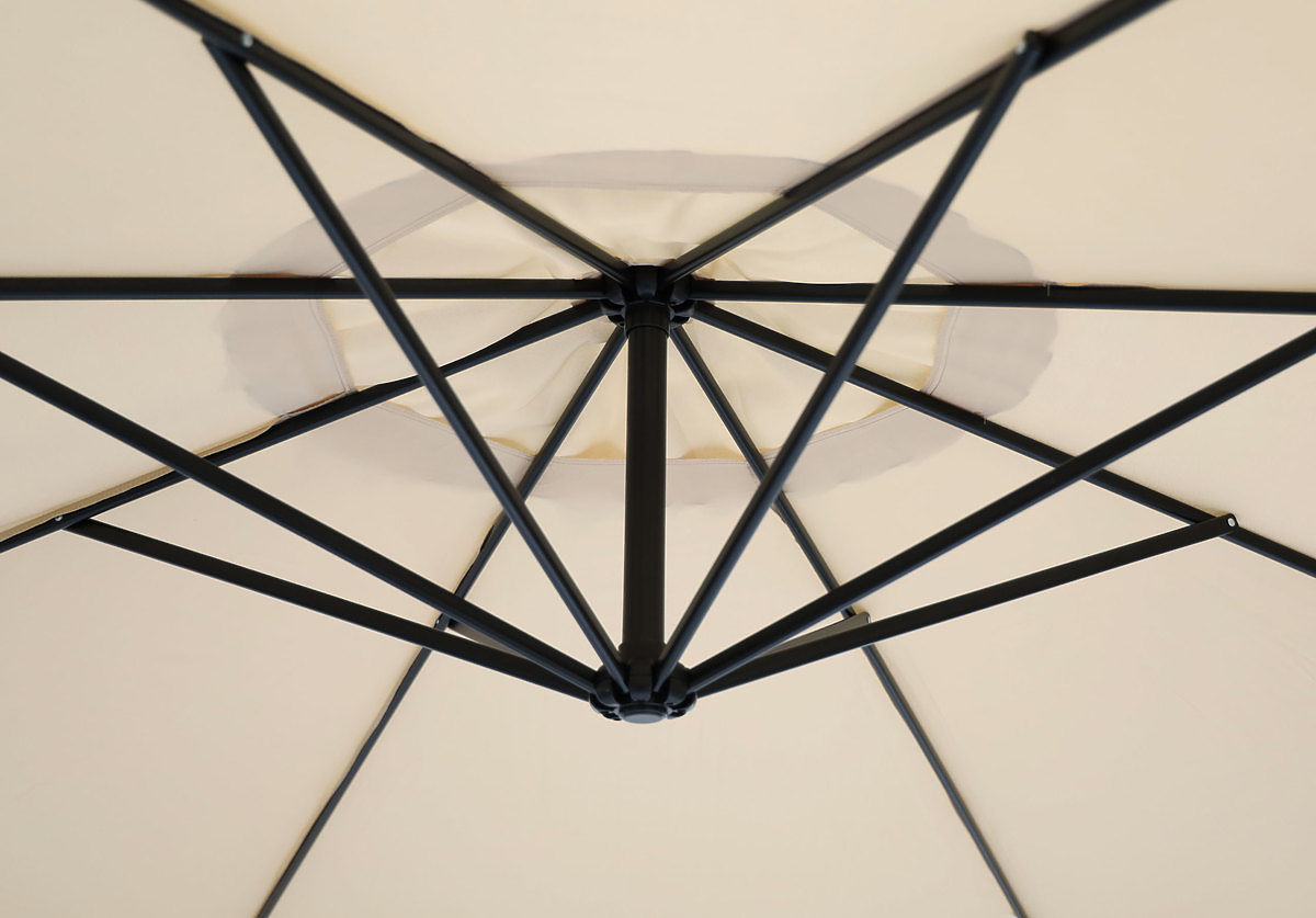 Dizajn kišobrana omogućuje postavljanje nadstrešnice pod kutom prema suncu. Ovo je posebno korisna opcija za sunčanih dana, zahvaljujući kojoj kišobran stvara još ugodniju hladovinu. Ova funkcionalnost omogućuje savršeno prilagođavanje položaja suncobrana položaju sunca i stvaranje ugodne zone sjene u vašem vrtu ili terasi.