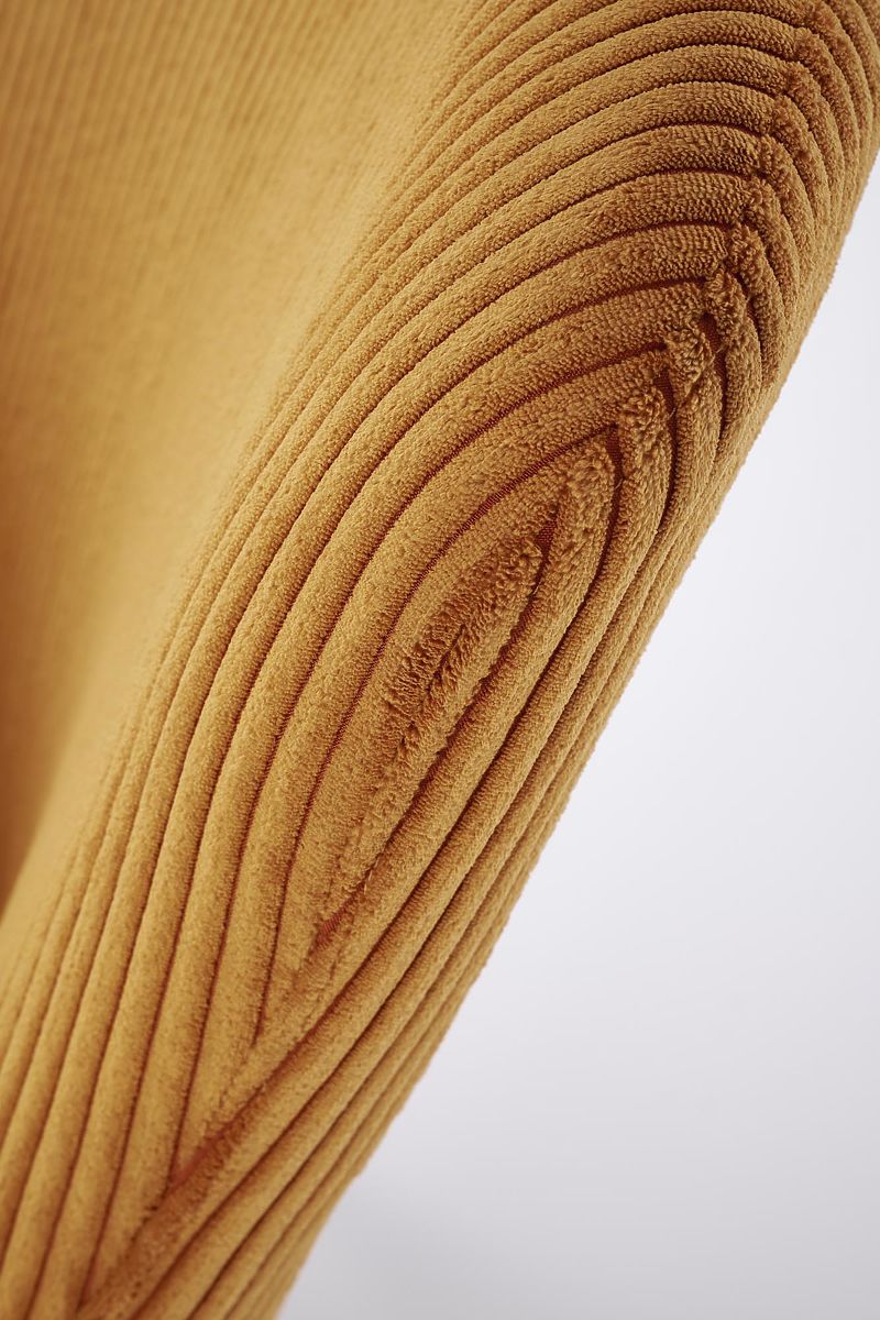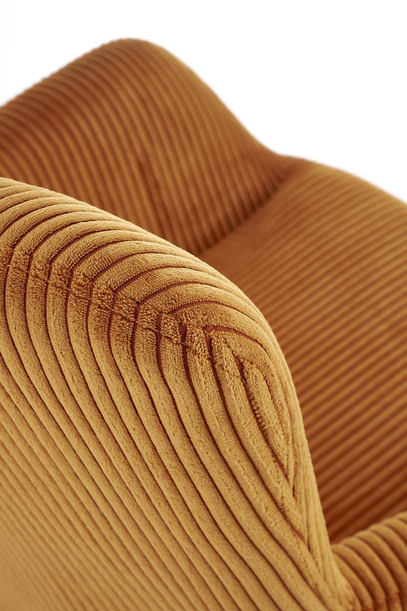 Samt u originalnoj boji senfa daje stolcu mek, au isto vrijeme sofisticiran izgled. Ova tkanina nije samo ugodna na dodir, već je i izdržljiva i laka za održavanje, osiguravajući dug vijek trajanja Vaše stolice.