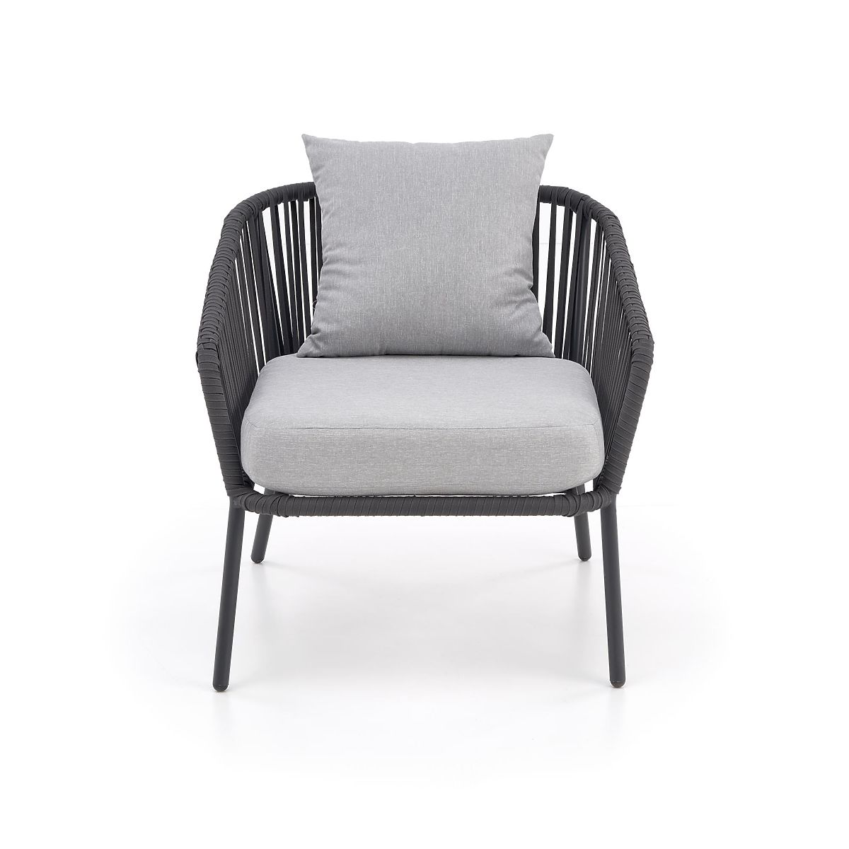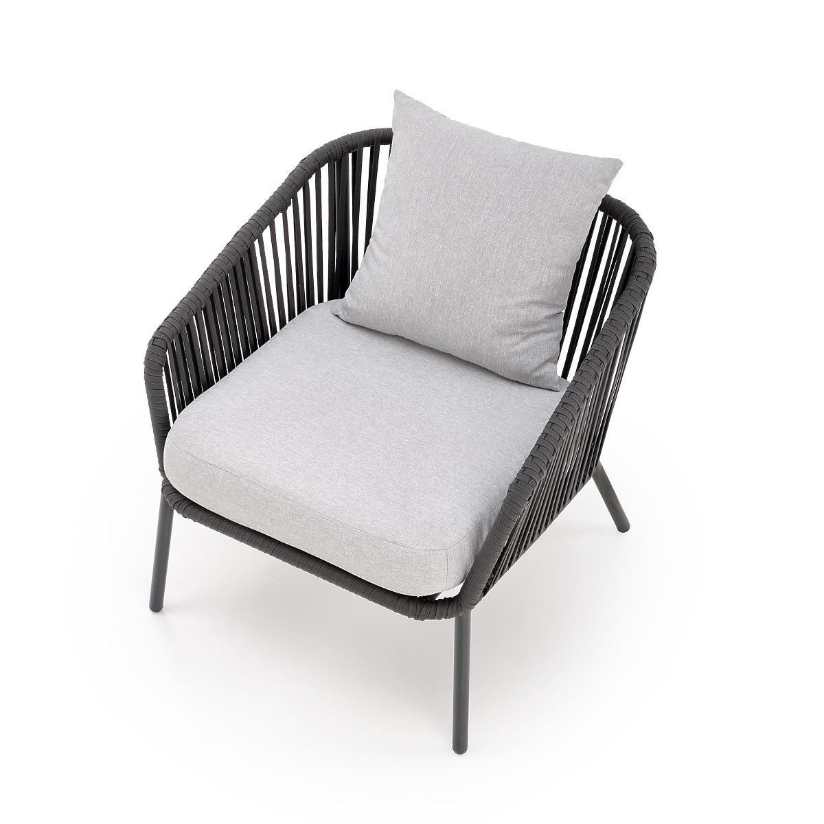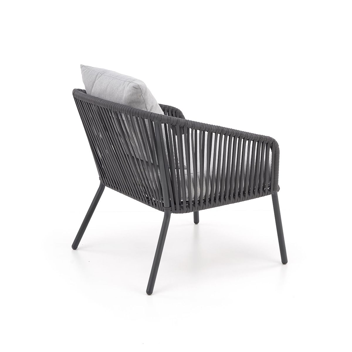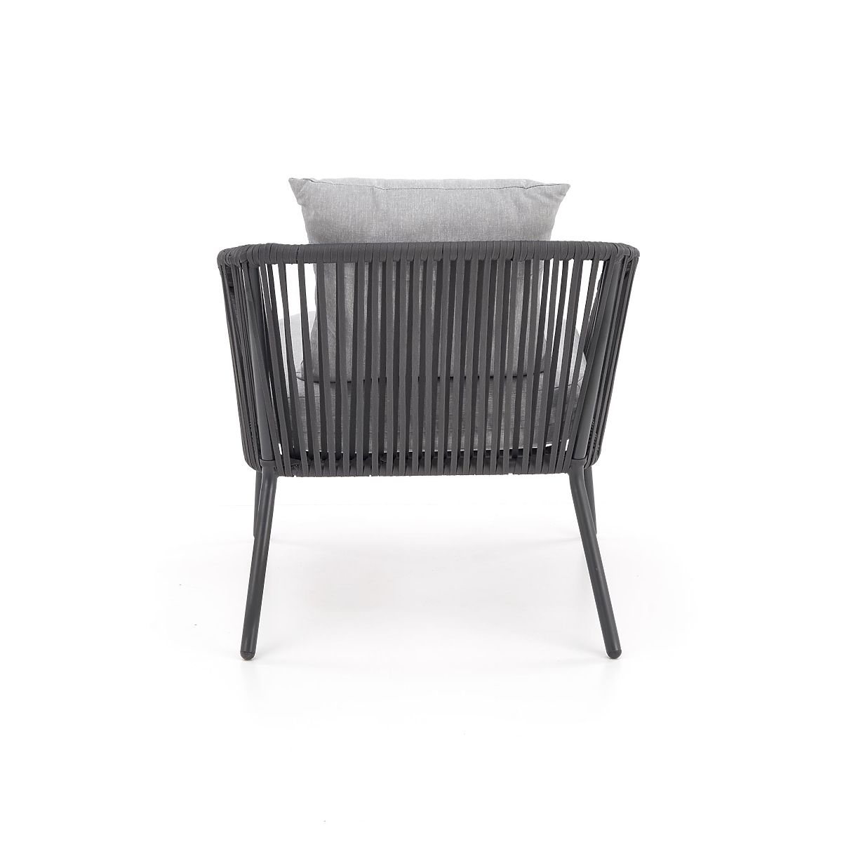 Ovaj namještaj za terasu izrađen je od aluminija premazanog prahom u kombinaciji s užadima u tamnoj boji pepela, što dodaje twist cjelokupnom dizajnu, kao i robusnost. Aluminij se odlikuje visokom otpornošću na vremenske utjecaje i osigurava dug vijek trajanja namještaja.
