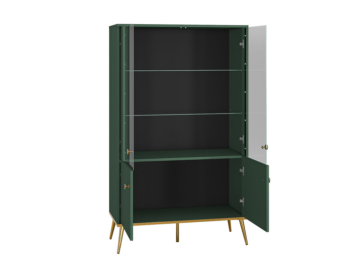 Tražite li izniman komad namještaja koji spaja jednostavnost s elegancijom i povezuje interijer s prirodnom ljepotom, onda je ova veća staklena vitrina Forest koju morate imati u svom domu. Vitrina Forest u jedinstvenom tamnozelenom i zlatnom dizajnu prikladna je kako za moderno namještenu kuću, tako i lijepo nadopunjuje život u retro stilu.