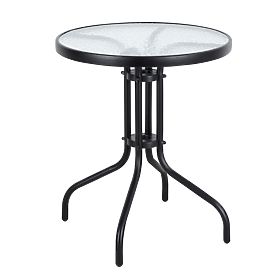 DOBRO DIZAJNIRAN VRTNI STOLStol može primiti 4 osobe zahvaljujući velikoj ploči promjera 60 cm, koja je izrađena od kaljenog stakla. Ovaj materijal je otporan na ogrebotine, prljavštinu i teško ga je oštetiti. Na rubovima stola vidljiv je crni okvir koji daje moderan karakter.
