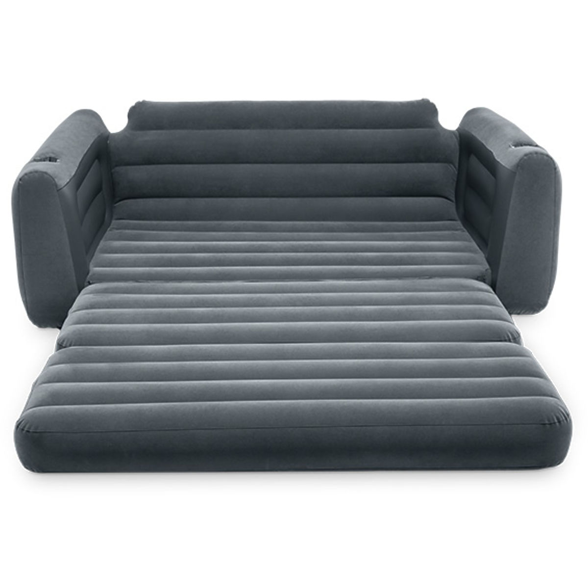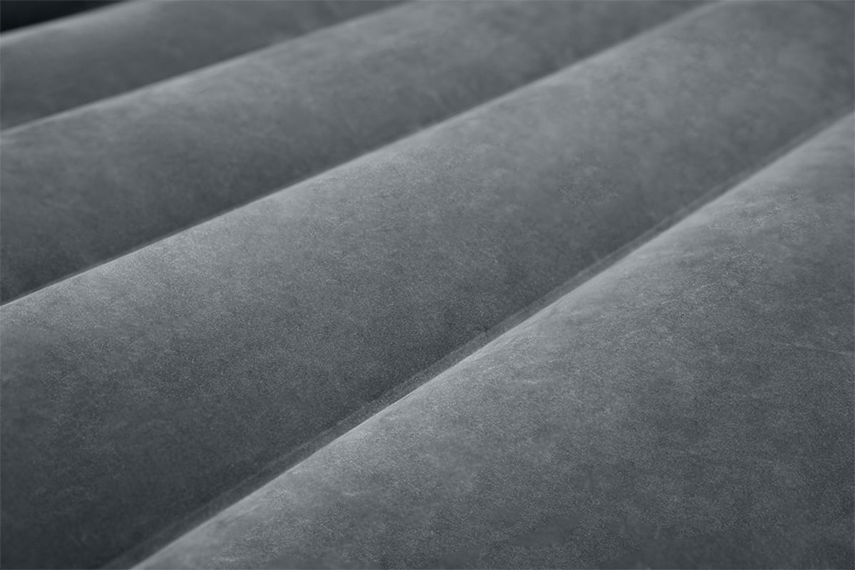 Velur kauč INTEX, dimenzija 224 x 203 x 66 cm, idealan je za 2 osobe. Izrađen od čvrstog PVC materijala, presvučen ugodnim na dodir vodootpornim velurom. Cijeli u ugodnoj sivoj boji koja se uklapa u svaki interijer. Bostonski ventil omogućuje ispuštanje zraka unutar minute, sklapanje i spremanje u ormar.