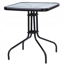 DOBRO DIZAJNIRANI VRTNI STOLKvadratna ploča dimenzija 60x60 cm osigurava mjesto za 4 osobe, koje na nju mogu udobno odložiti svoje napitke ili čak jesti. Metalna konstrukcija osigurava stabilnost i ploča od kaljenog stakla osigurava da je stol izdržljiv i siguran čak i pri velikom opterećenju.