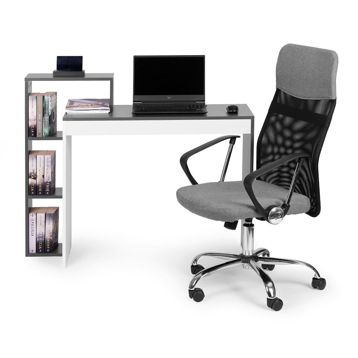 Lukahome.hr » Stolovi i stolići za kavu / Stolovi / Bijelo-sivi uredski računalni stol + polica s 4 police