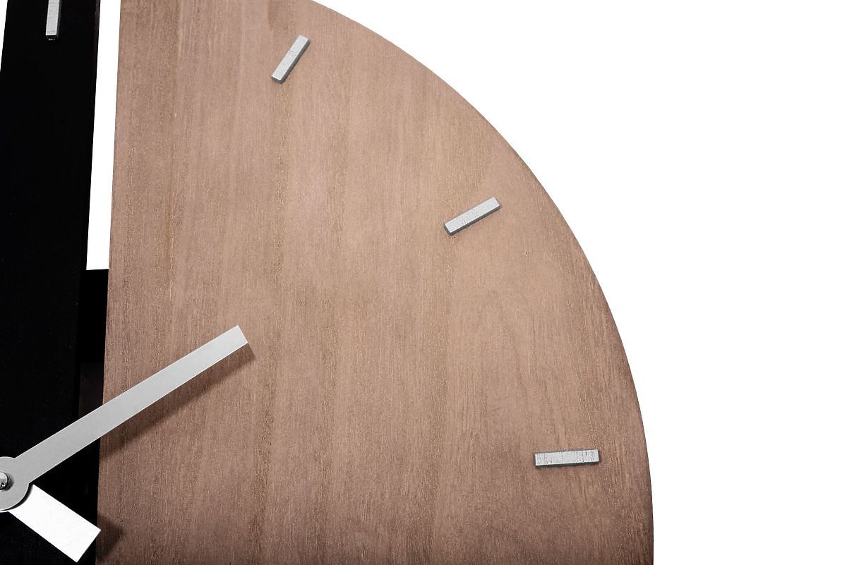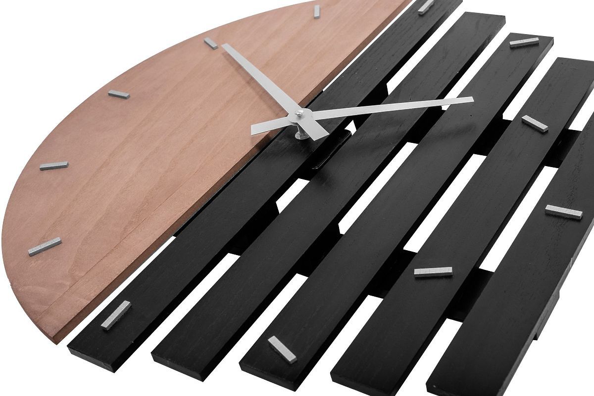 Stilski zidni sat s nekonvencionalnim dizajnom predstavlja savršen dodatak koji odmah privlači pažnju i daje vašem interijeru izuzetan karakter. Sat kombinira prirodni drveni materijal sa sofisticiranim izgledom crne boje. Svojim neobičnim oblikom postat će središnja točka svake prostorije u koju ga postavite.