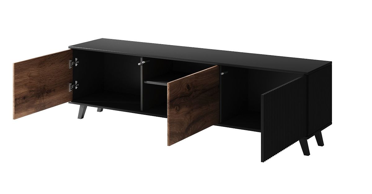 Materijal: TV stolić je izrađen od MDF-a s furnirom i furnirane ploče za namještaj, što osigurava njegovu izdržljivost i dugovječnost. MDF je poznat po svojoj stabilnosti i glatkoj površini, idealnoj za kvalitetne površinske obrade. Noge stola su od polipropilena, koji pruža čvrstoću i stabilnost.