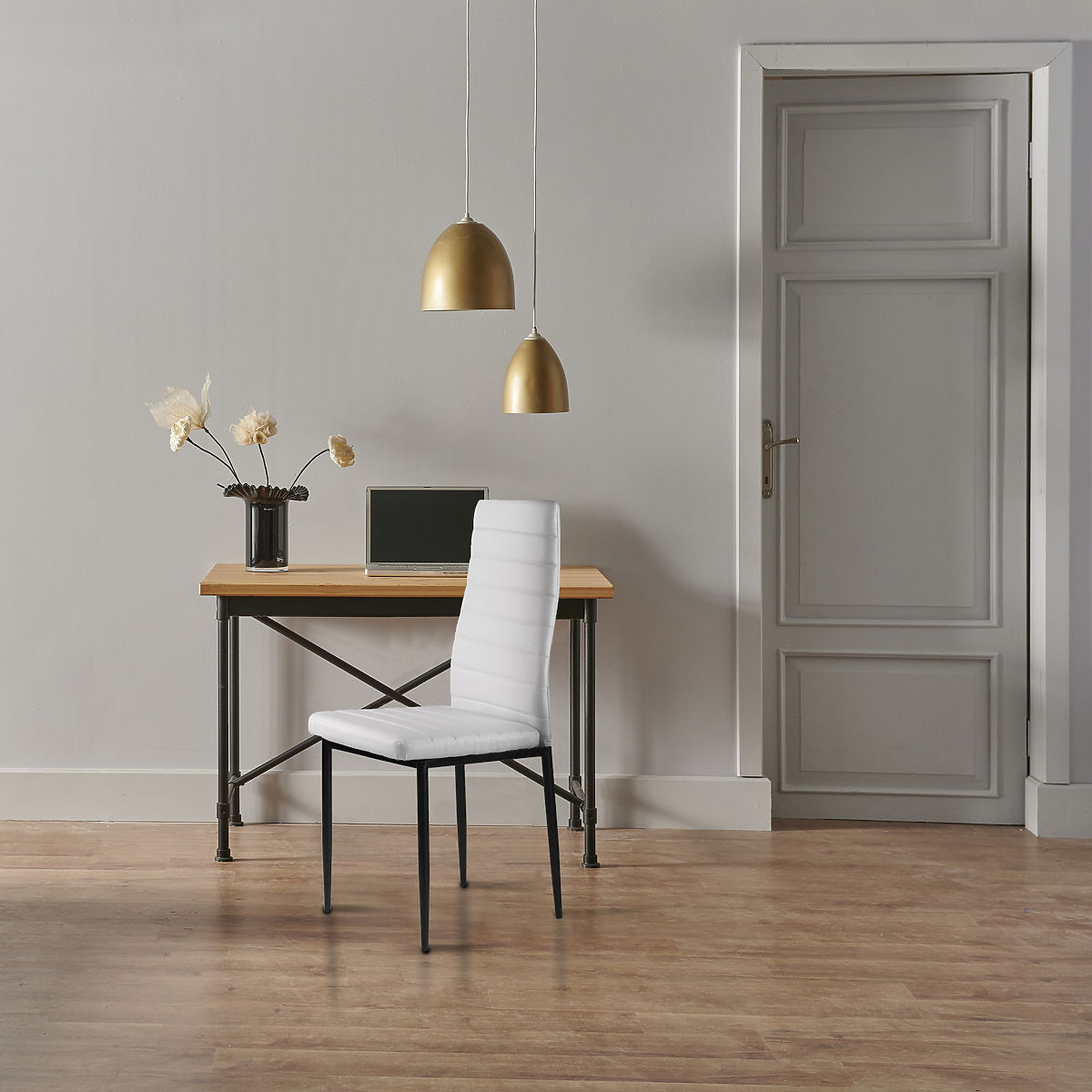 Stolice će se savršeno uklopiti uz obiteljski stol u vašoj blagovaonici i kuhinji. Bijela presvlaka izrađena od mekane eko kože i crne, jednostavne noge čine zanimljivu kombinaciju koja će učiniti da stolice izgledaju sjajno i uklapaju se u svaki tip interijera, dajući mu poseban karakter.