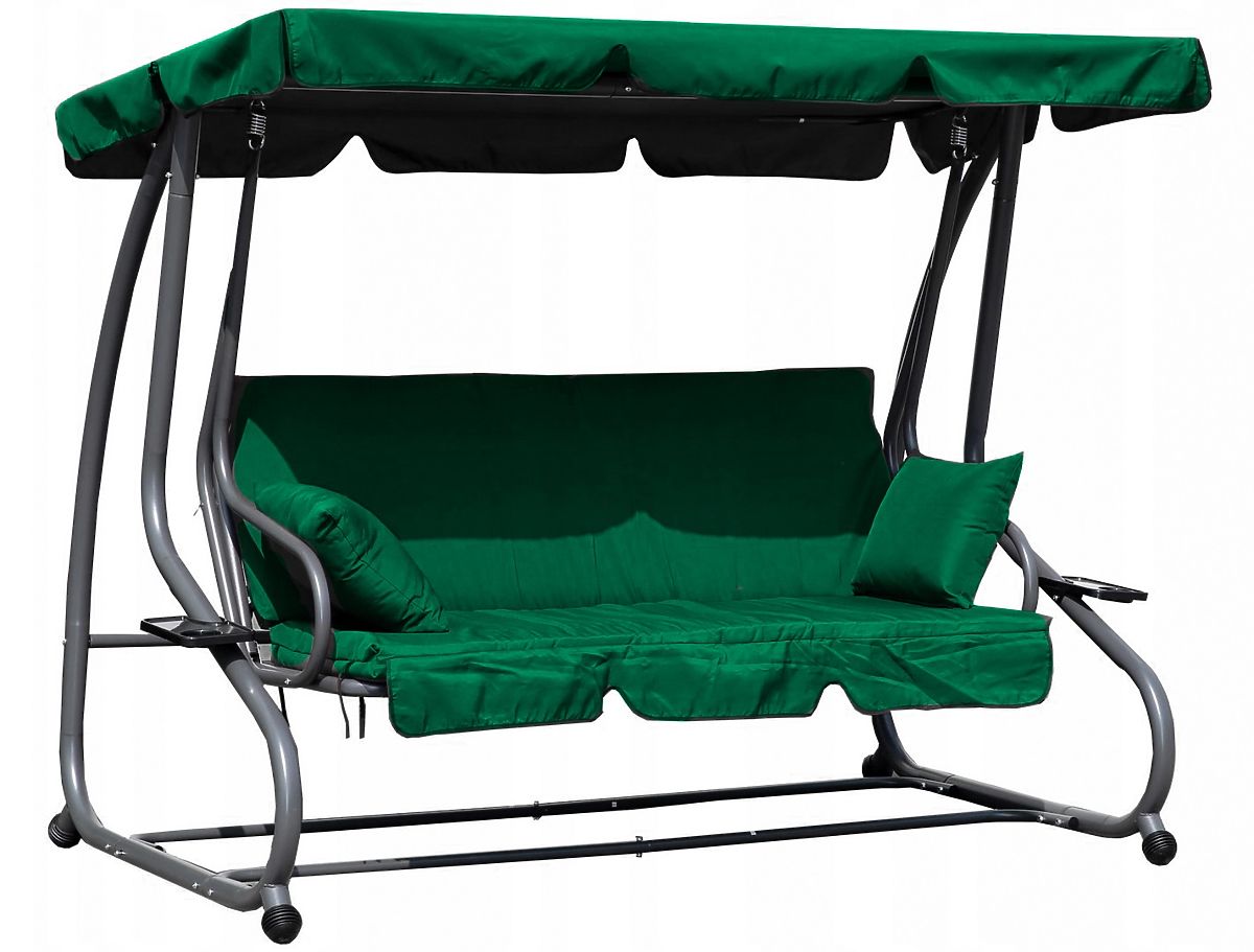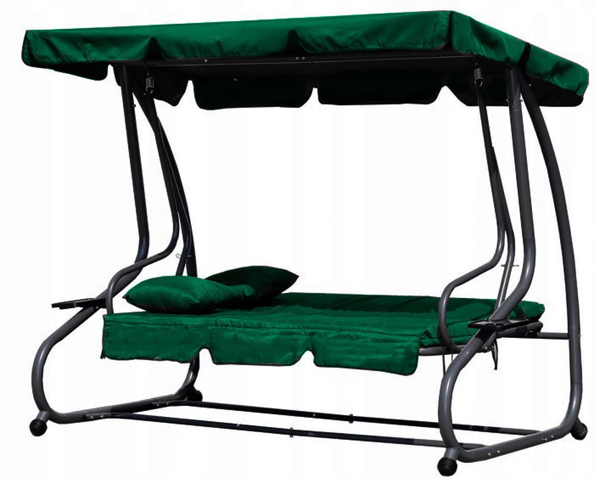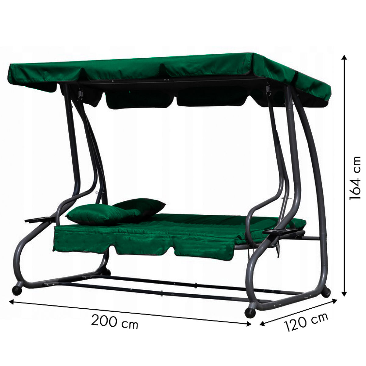 SVE DOBRO PROMIŠLJENOVrtna ljuljačka opremljena je velikim podesivim krovom koji nas štiti od štetnog UV zračenja i pruža ugodnu sjenu u vrućim danima. Udoban mekani madrac debljine 8 cm i dva priložena jastuka čine odmor ugodnim u svako doba. Zahvaljujući mogućnosti brze pretvorbe ljuljačke u ležaljku prilagodit ćemo je točno našim potrebama.