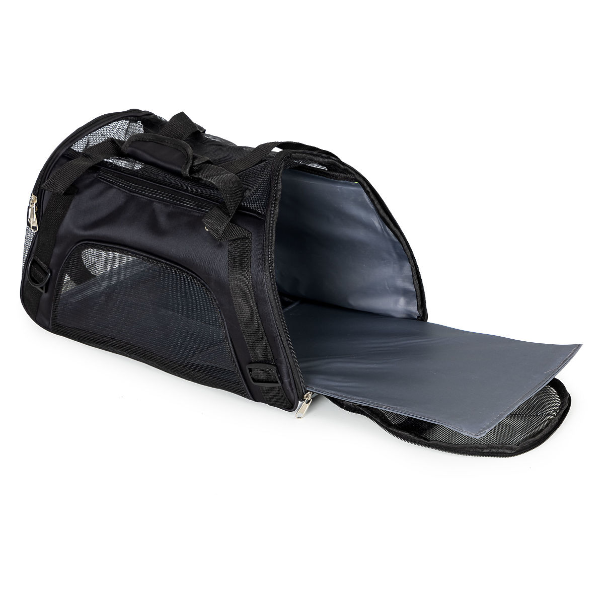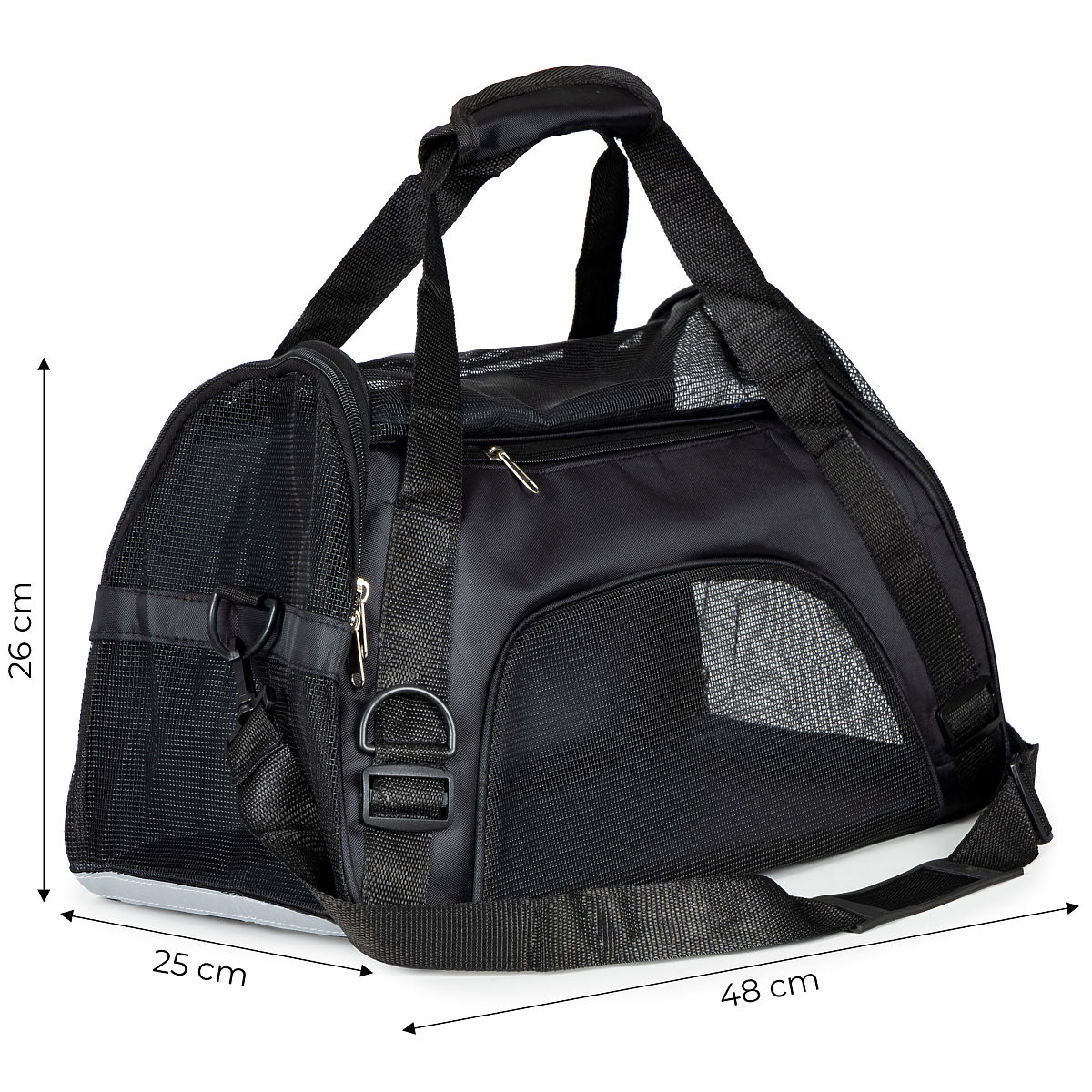 Ova izvrsna torba za životinje izrađena je od trajnog materijala koji osigurava zaštitu i udobnost tijekom putovanja. Otvaranje s obje strane omogućuje jednostavan pristup unutrašnjosti i udobno stavljanje i vađenje vašeg ljubimca.