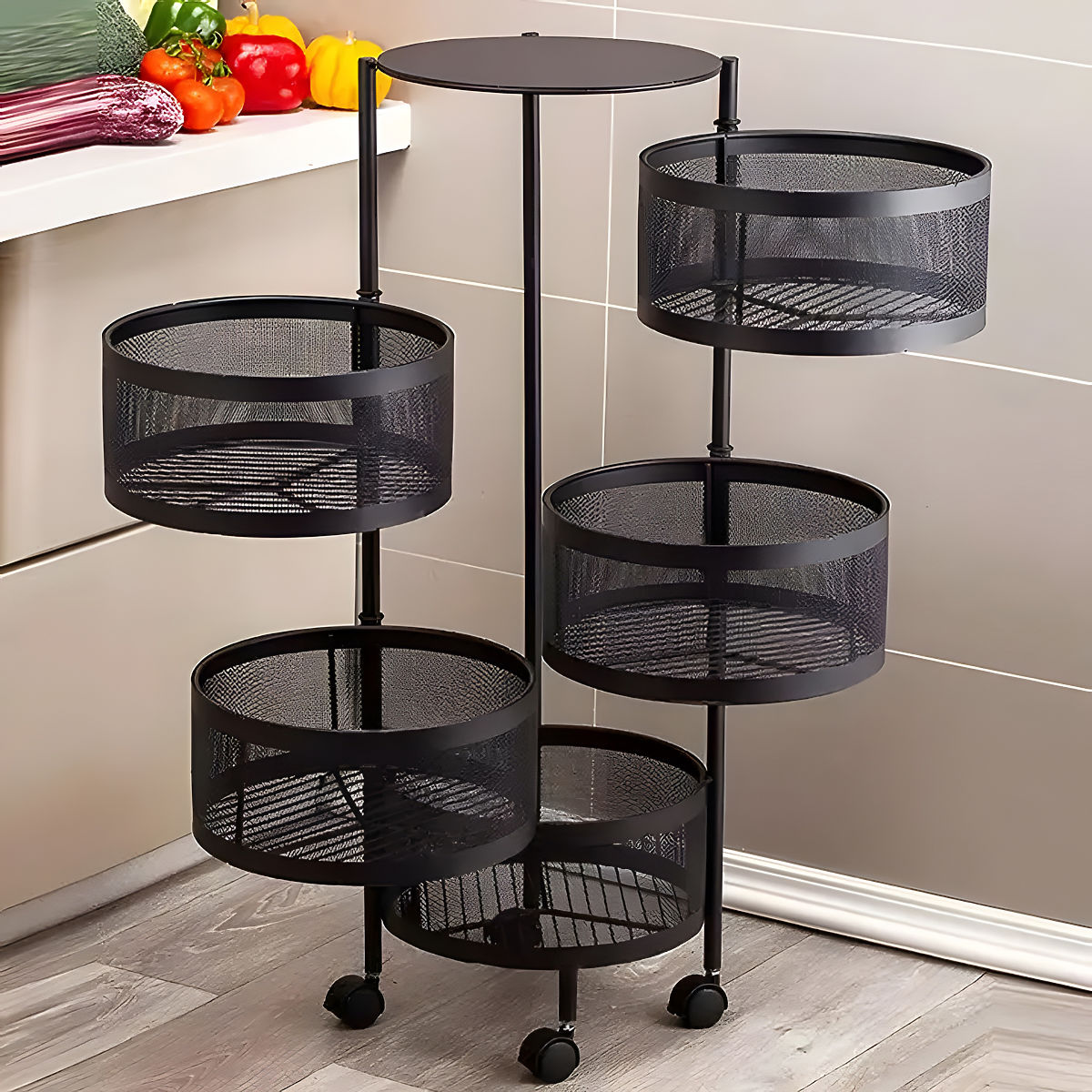 Lukahome.hr » Kuhinja pomagala i posuđe / Organizatori na kuhinja / Kuhinjski stalak pomoćnik organizator rotirajuće police 5 razina metal ModernHome