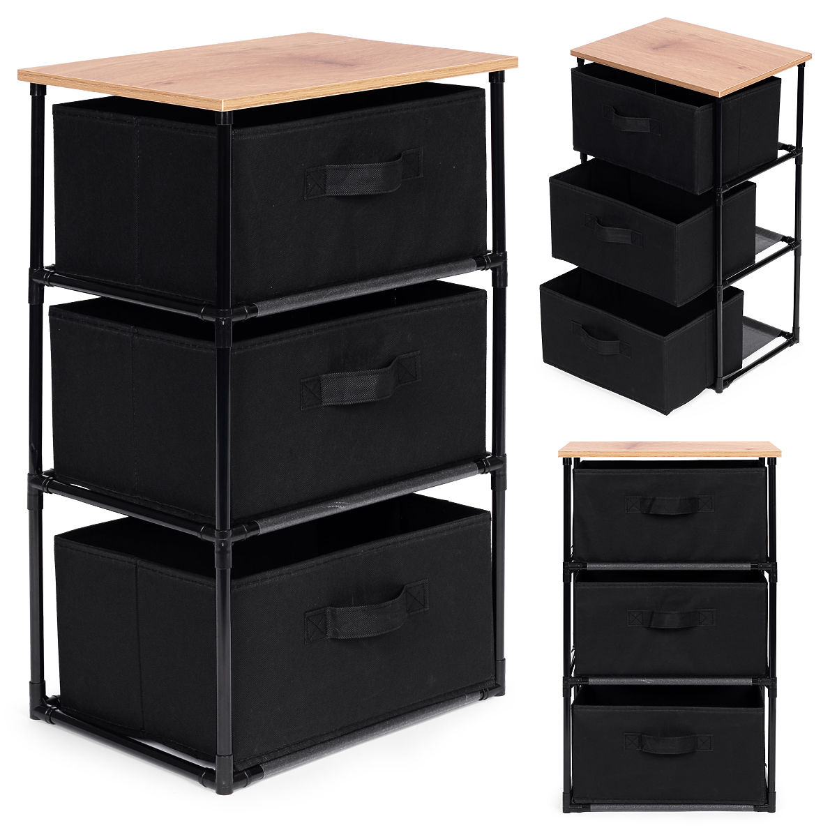 Lukahome.hr » Kupaonica i WC / Kupaonski pribor / Tekstilni ormar polica organizator s uklonjivim košarama 3 razine loft crna ModernHome