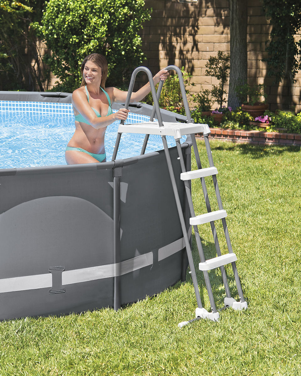 Ljestve INTEX 28076 su idealno rješenje za bazene visine 122 cm. Zahvaljujući njima, ulaz i izlaz iz vode su udobni i sigurni. Čvrsta metalna konstrukcija, zaštićena od korozije, osigurava dugotrajnost. Nosivost do 136 kg čini ljestve prikladnima za djecu i odrasle. To je neophodan dodatak za svaki vrtni bazen!