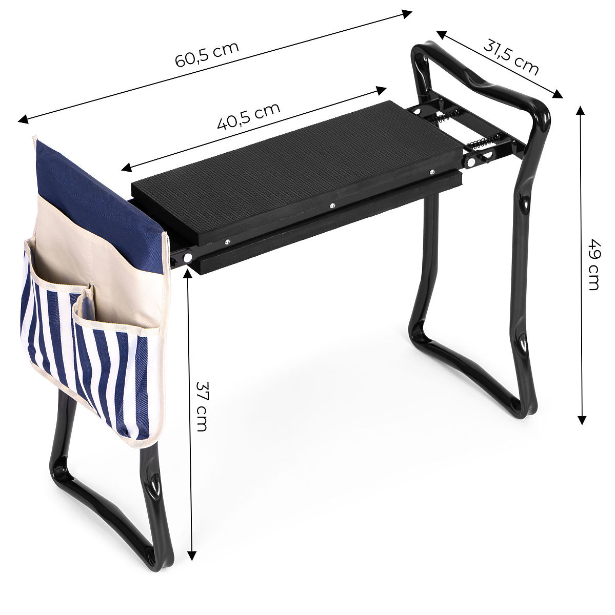 IZDRŽLJIV ČELIČNI OKVIRKlečalica može brzo promijeniti svoje dimenzije, što omogućuje njezino skladištenje i u malim prostorima. Njena niska težina i dimenzije omogućuju transport na bilo koje mjesto u našem vrtu.
