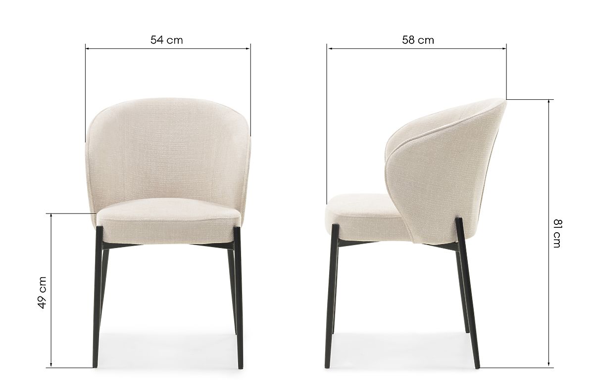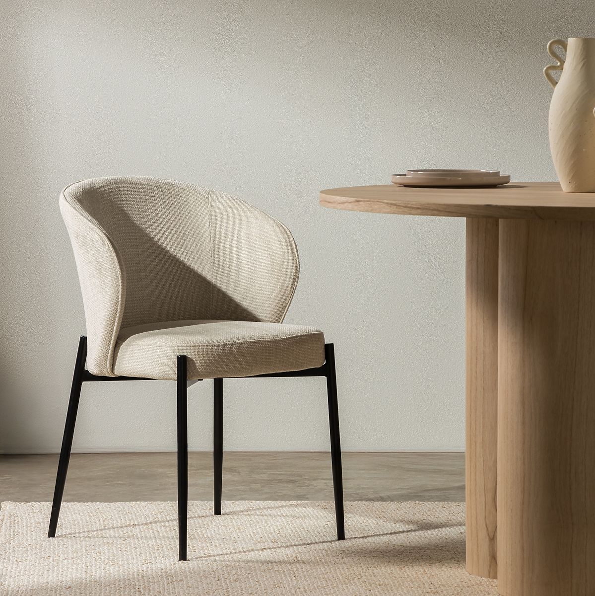 Blagovaonska stolica Avery s presvlakom od svijetlo bež tkanine i crnim nogama. .. više