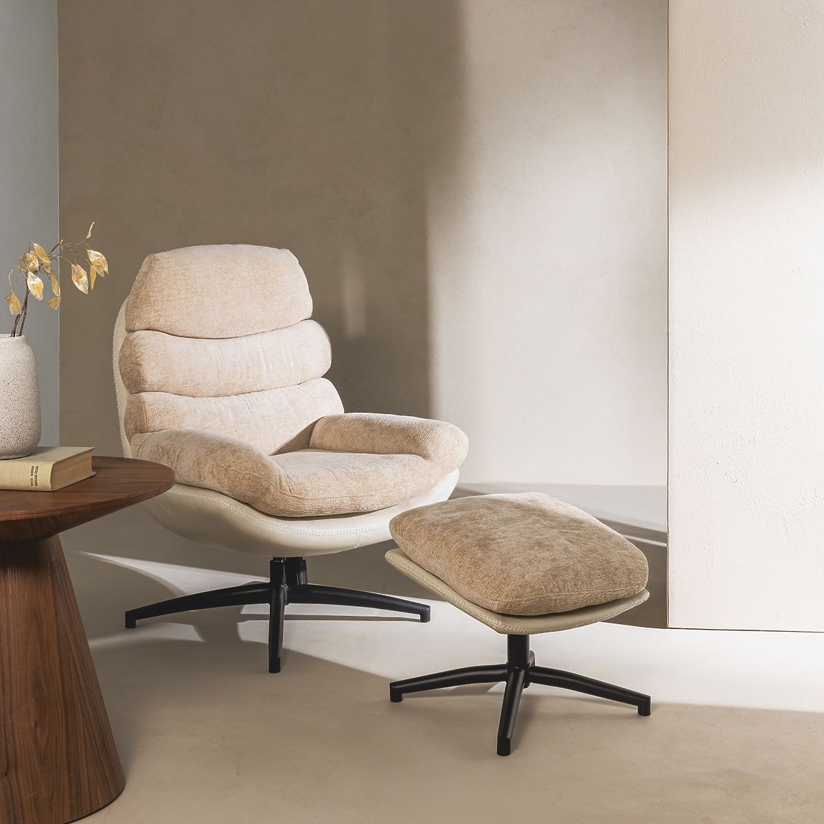 Rotirajuća stolica Prima s bež tkaninom i eko kožom. .. više
