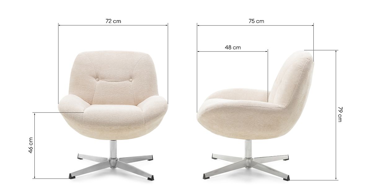 Osigurajte si nenadmašnu udobnost s Lunnom - stolicom koja će vas očarati ne samo svojim dizajnom, već i iznimno opuštajućim odmorom. Njegova presvlaka od meke, bež tkanine pruža osjećaj ugodnog okruženja, a nježne, zaobljene linije donose u prostoriju element udobnosti. Stolica Lunno ne samo da očarava izgledom, već i udobnošću koju nudi. Njegovo iznimno udobno sjedalo i ergonomski naslon osiguravaju da svaki trenutak odmora postane pravo zadovoljstvo. Osim toga, rotirajuća funkcija omogućuje slobodnu promjenu položaja, što osigurava još veću fleksibilnost pri korištenju. Ne zvuči li to sjajno? Priuštite si trenutak opuštanja u stolici Lunno i učinite svaki dan posebnim.