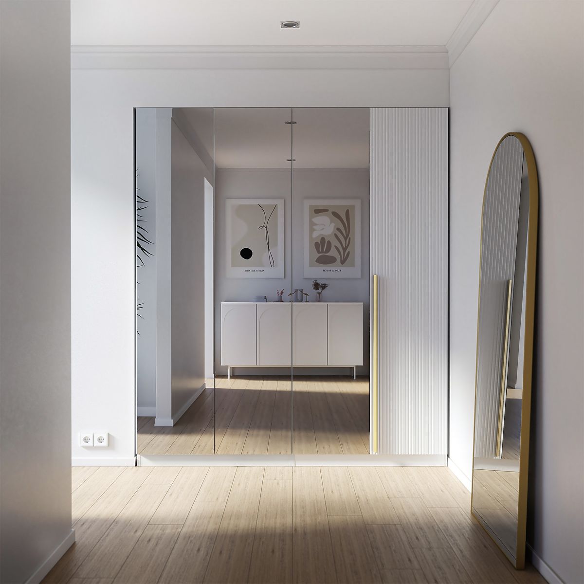 Četverokrilni ormar s ogledalom i dekorativnim utorima. .. više