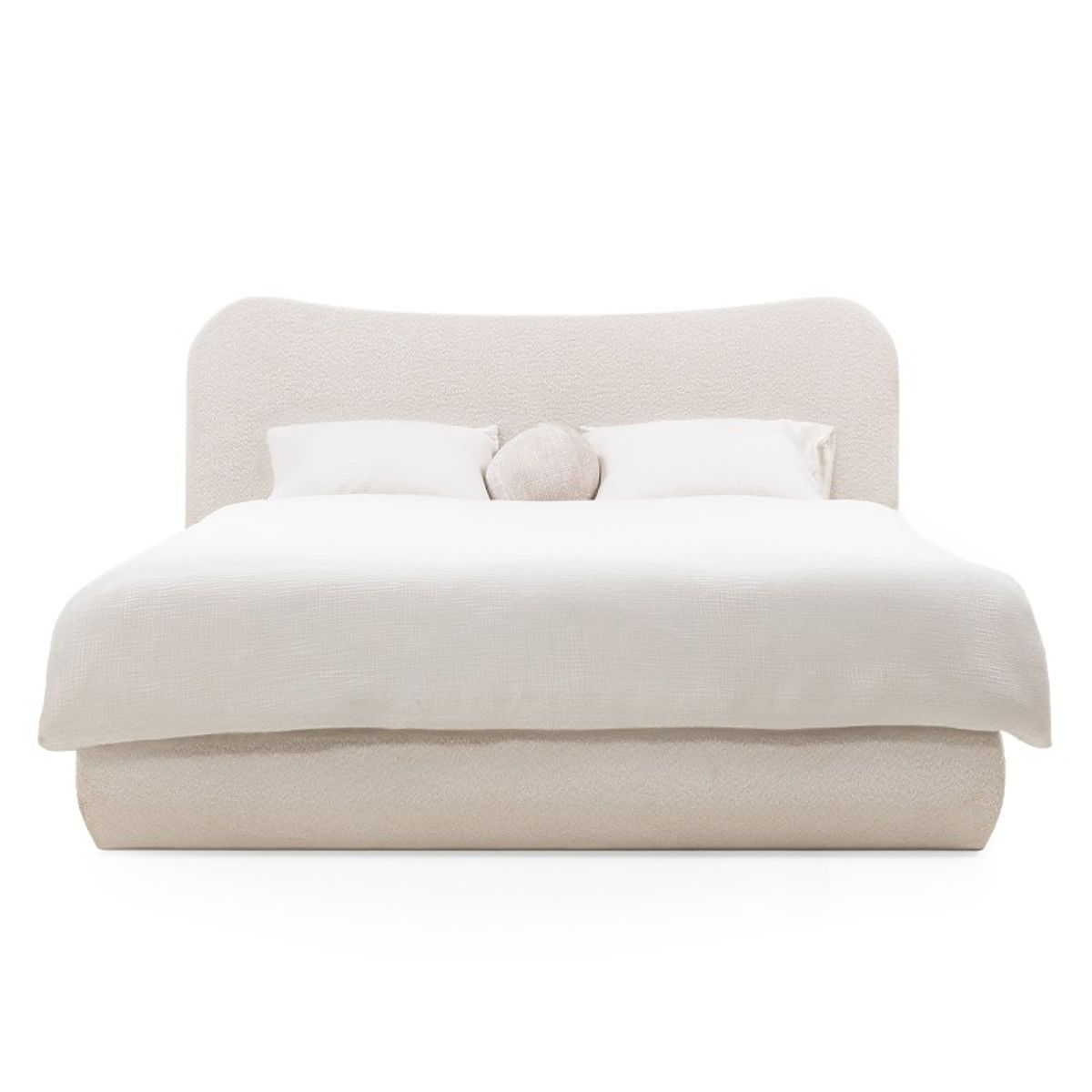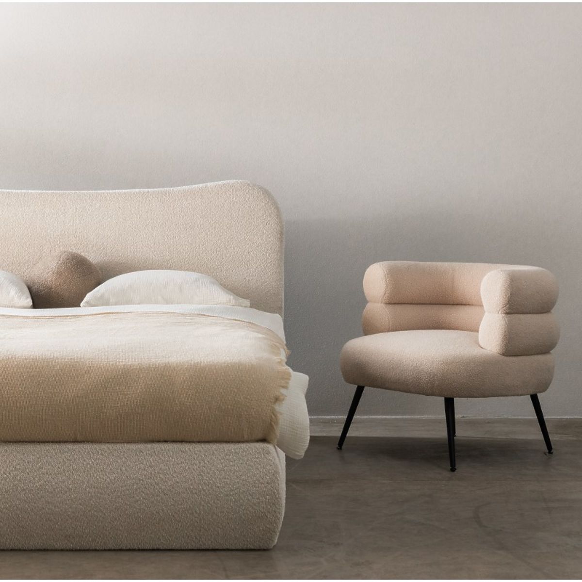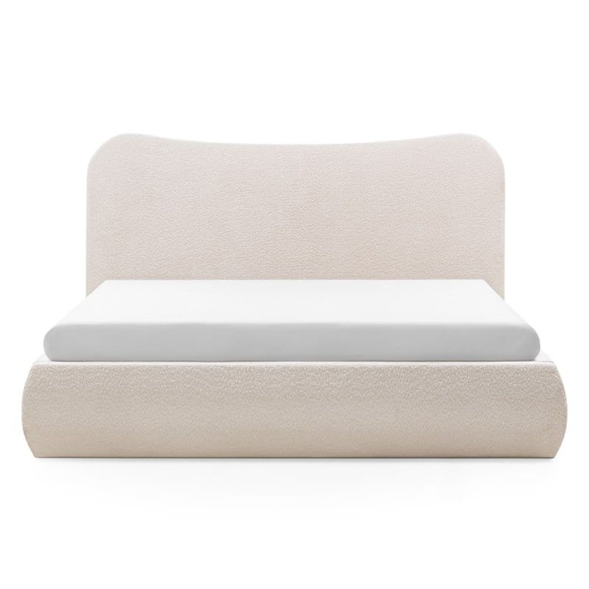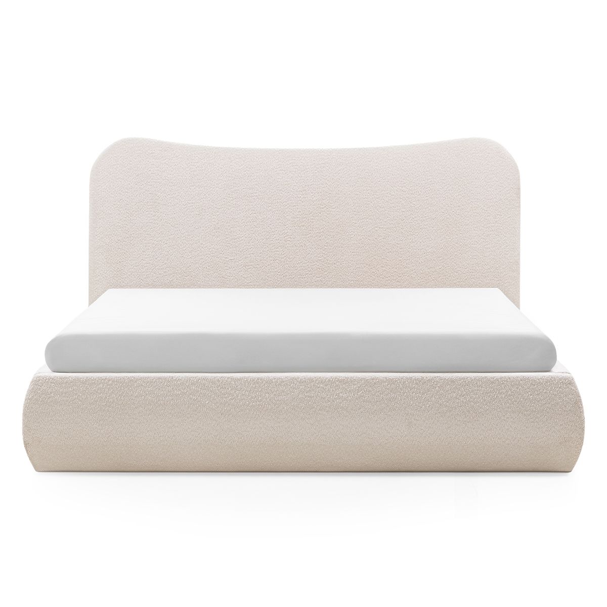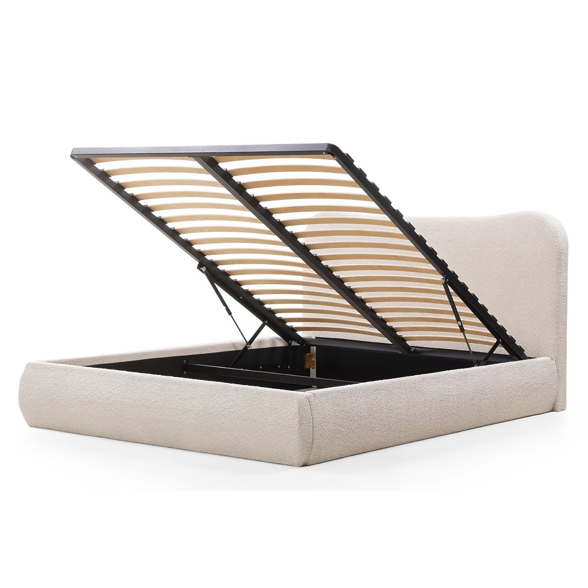 Tapecirani krevet Derry s podnicom i spremištem, zaobljen, bež. .. više
