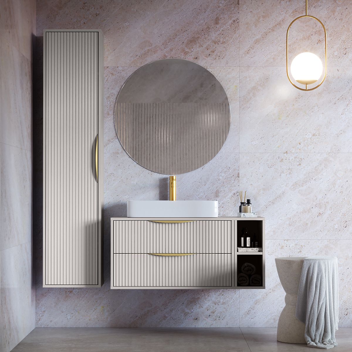 Lukahome.hr » Kupaonica i WC / Kupaonica ormari / Ormarić ispod umivaonika Avila 2.0, 80 cm, rebrasti, zlatne ručke, kašmir