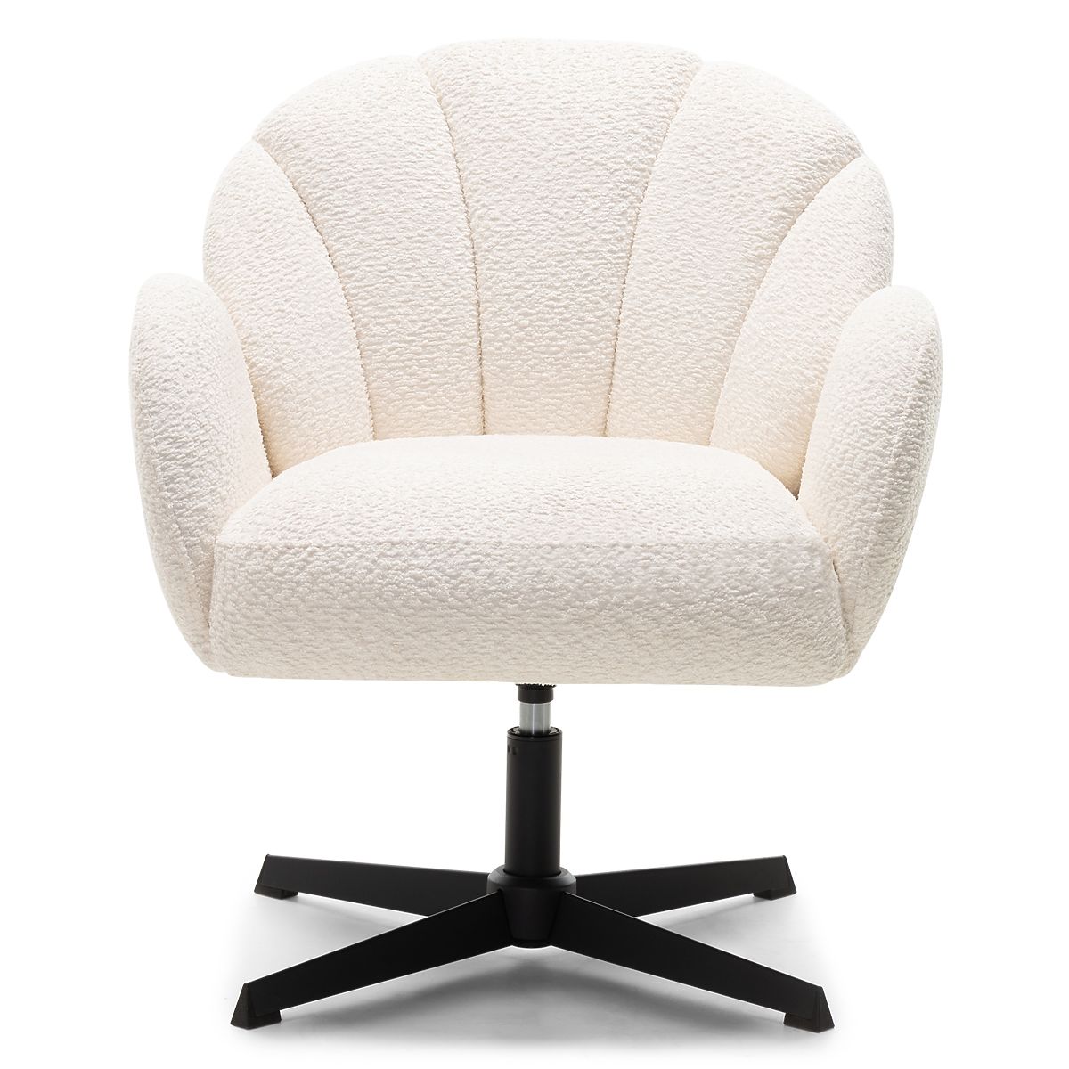 Stolica Casablanca s bijelom boucle tkaninom i crnim nogama. .. više