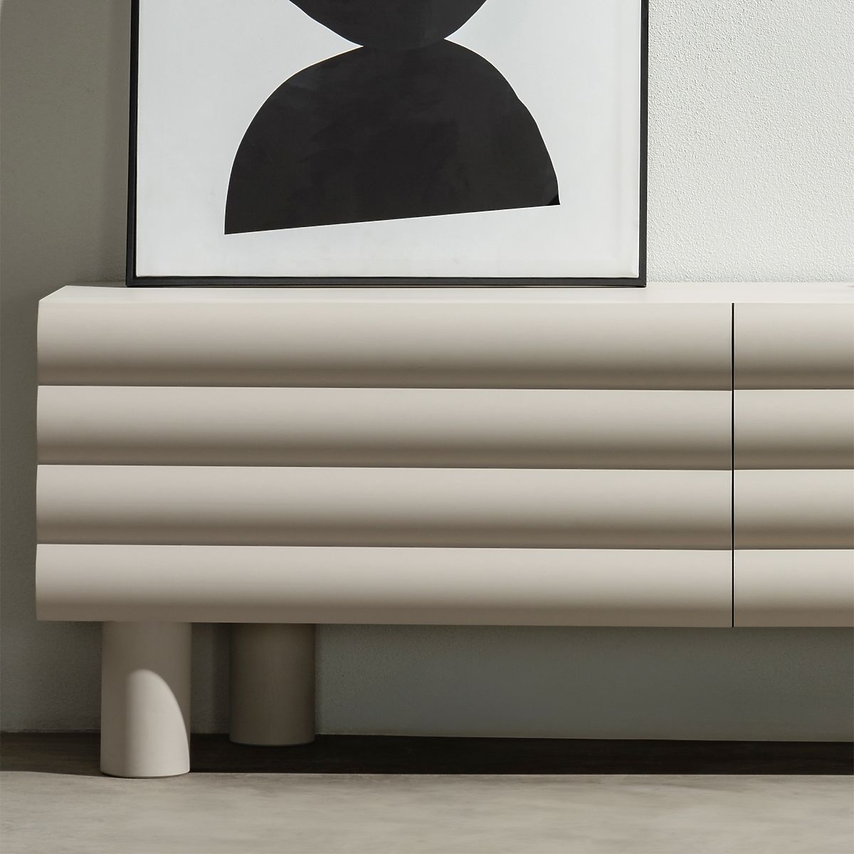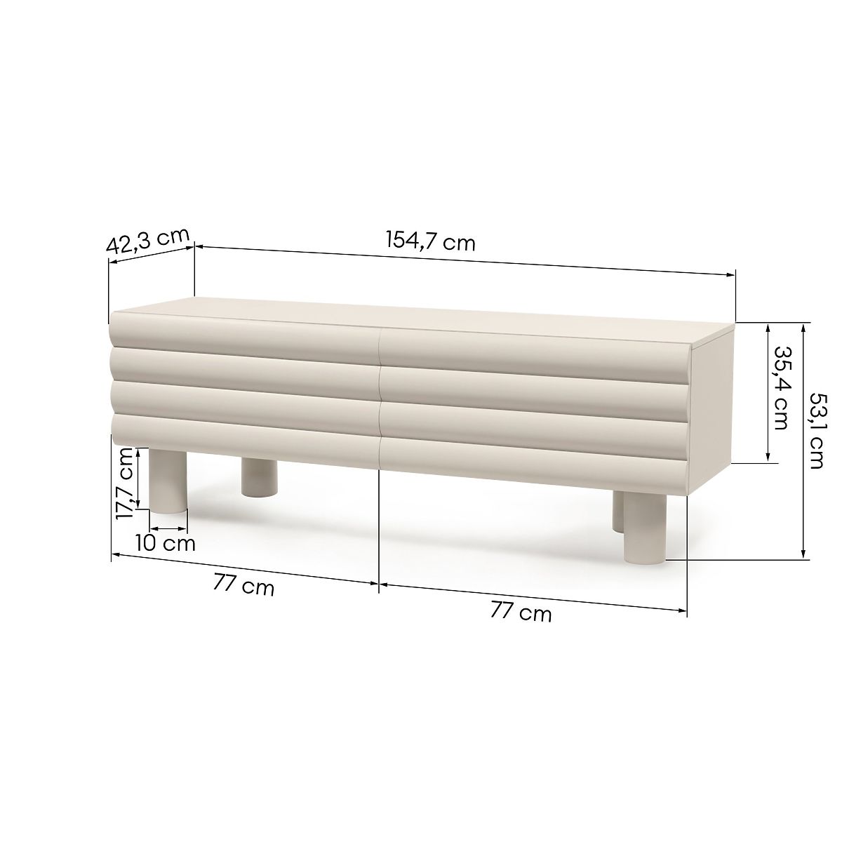 Bež TV ormarić Anatra s rebrastim prednjim dijelom. .. više