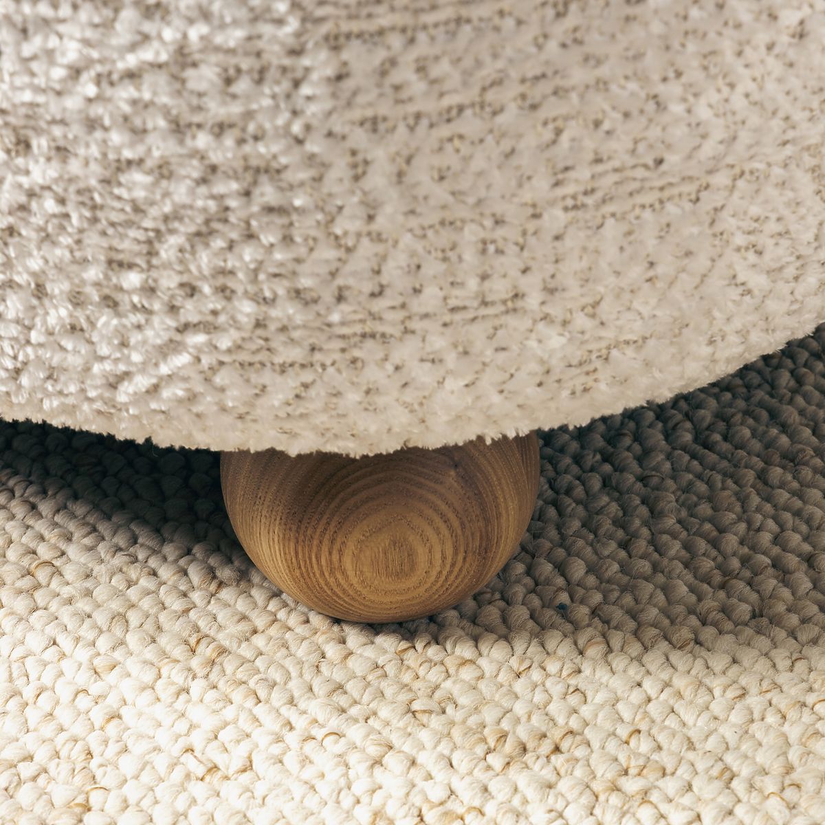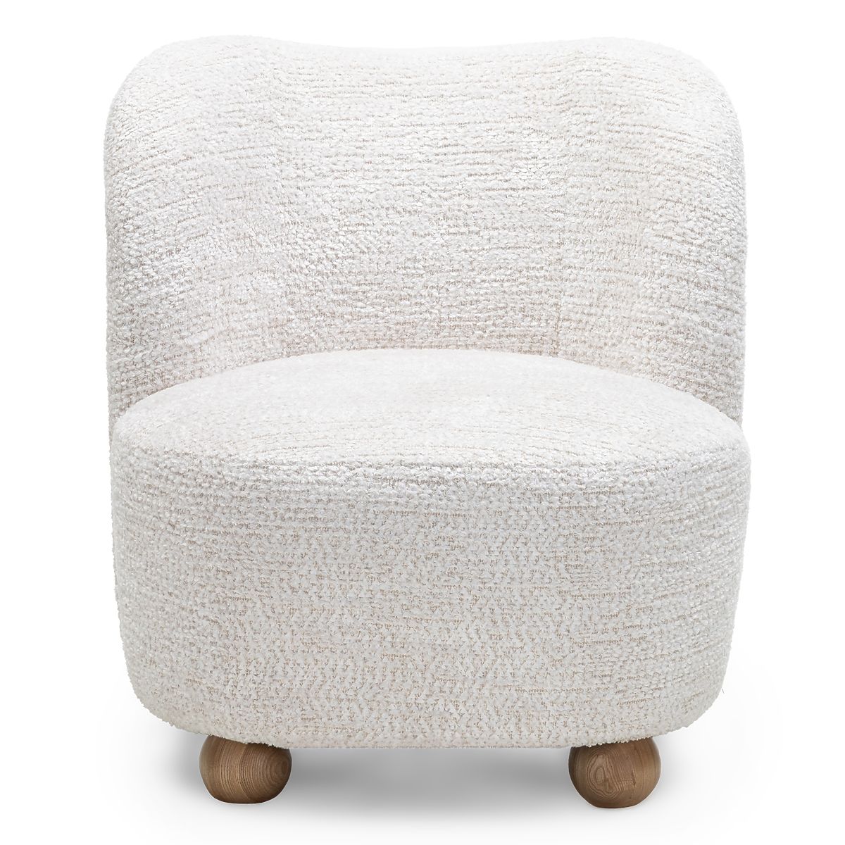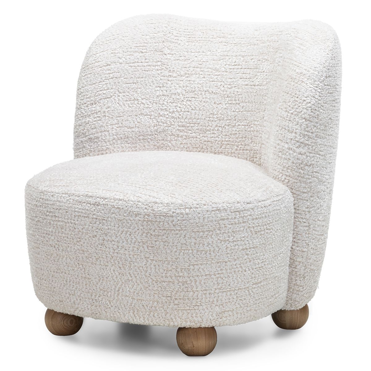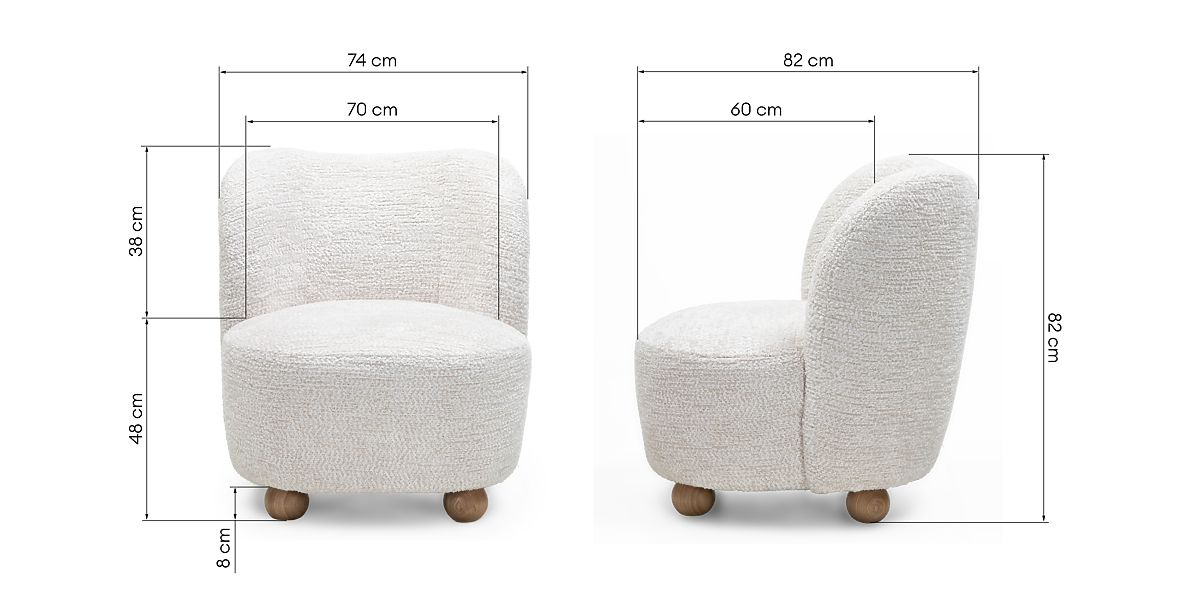 Fotelja Monroe s bež tkaninom i kuglastim nogama od jasenovog drva. .. više