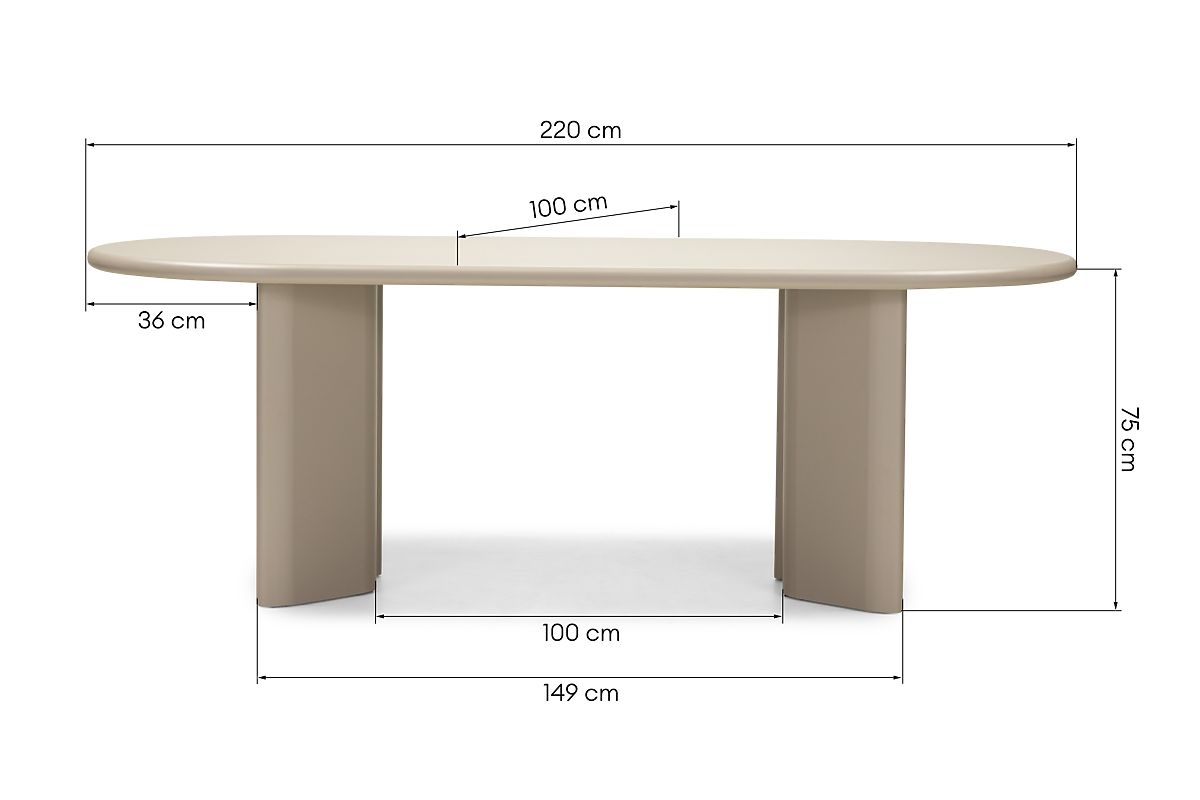 Ovalni stol Lima 220 cm u tamno bež boji s jedinstvenim nogama. .. više