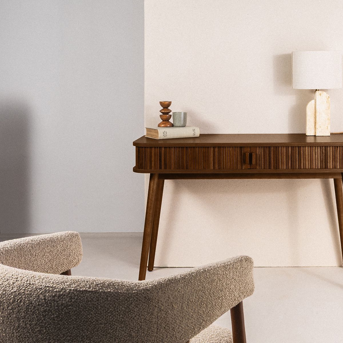 Pisaći stol Clemente s lamelama i orahovim završetkom. .. više