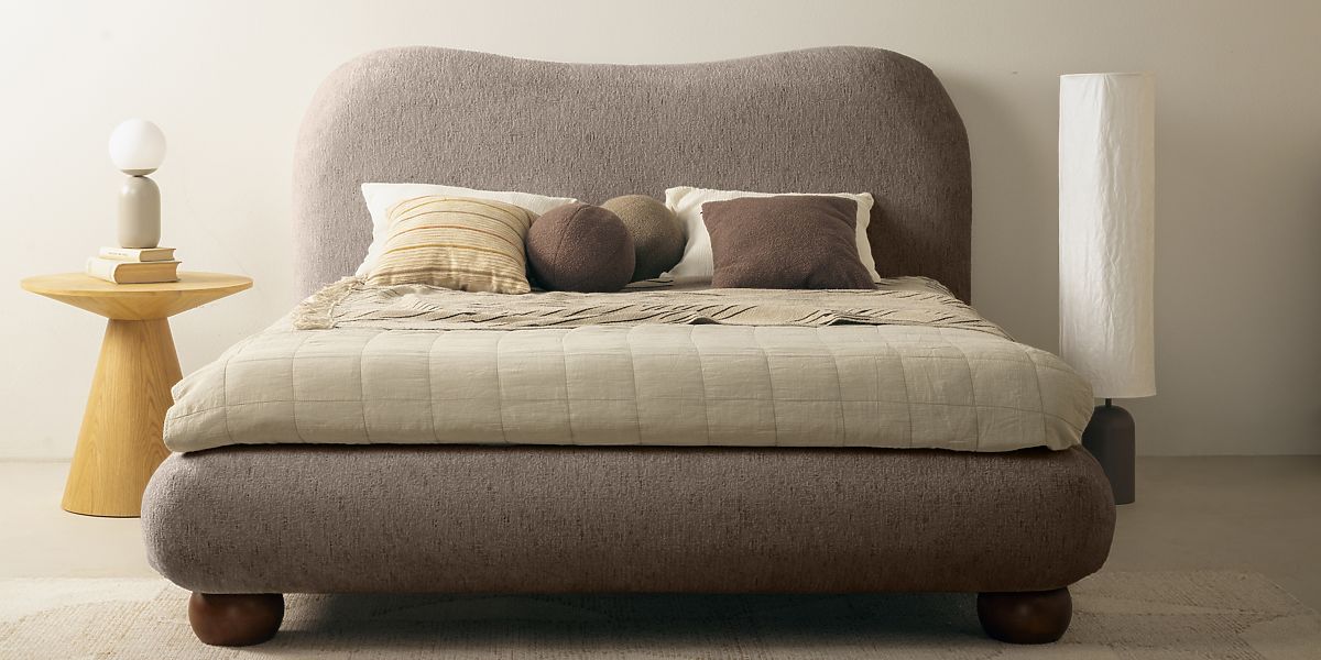 Tapecirani krevet Bowee s podnicom i sivim dizajnom. .. više