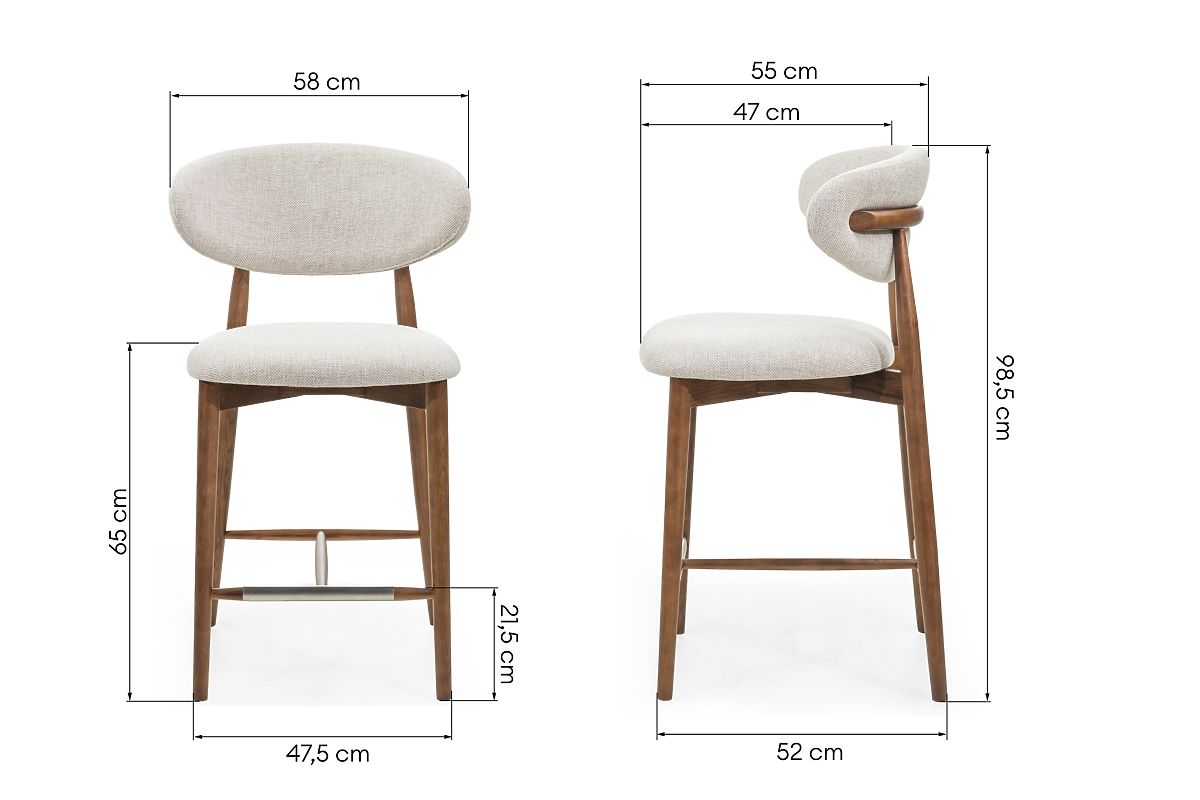 Barska stolica Larnaca savršena je kombinacija modernog dizajna i elegancije, koja se uklapa u svaki interijer. Bež tkanina na sjedalu i naslonu osigurava udobnost i ugodan karakter, dok konstrukcija od jasenovog drva u toploj smeđoj nijansi donosi prirodni šarm. Odlično se uklapa u kuhinju, blagovaonicu ili barski prostor. Njezin elegantan izgled i čvrsta konstrukcija osiguravaju pouzdanost dugi niz godina, a jedinstveni dizajn dodaje svakom prostoru karakter i toplinu. Naručite barsku stolicu Larnaca i dajte svom interijeru novi, jedinstveni izgled već danas!