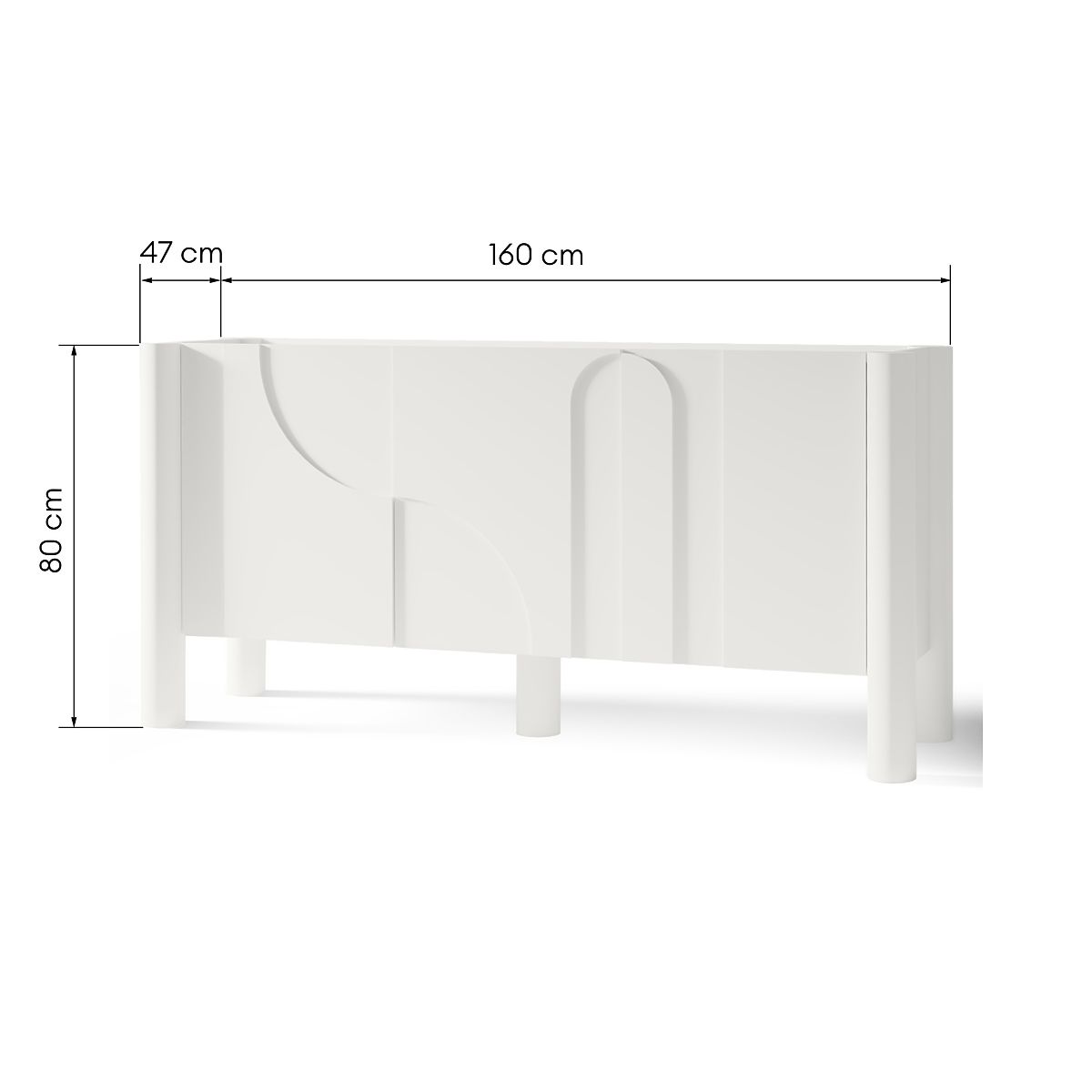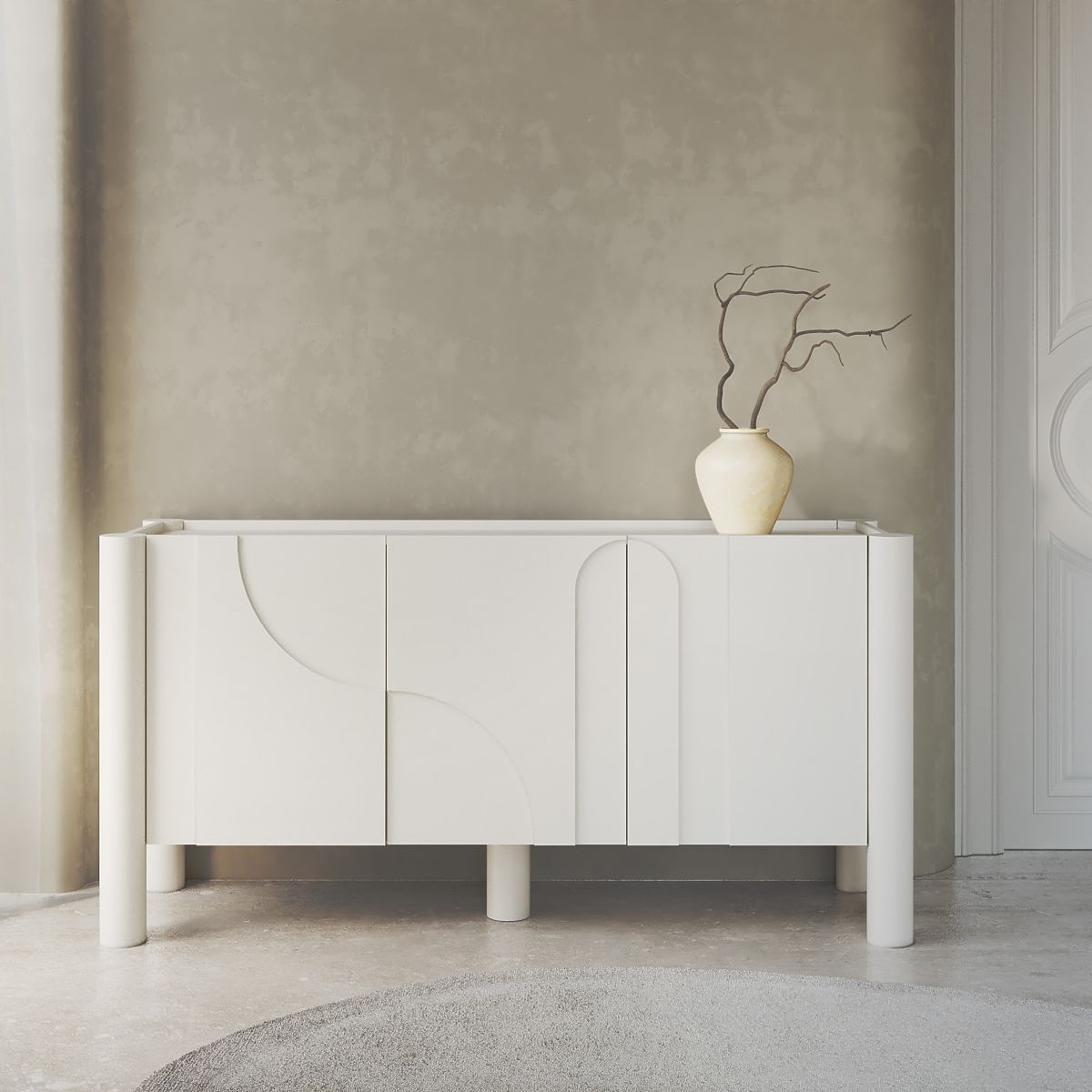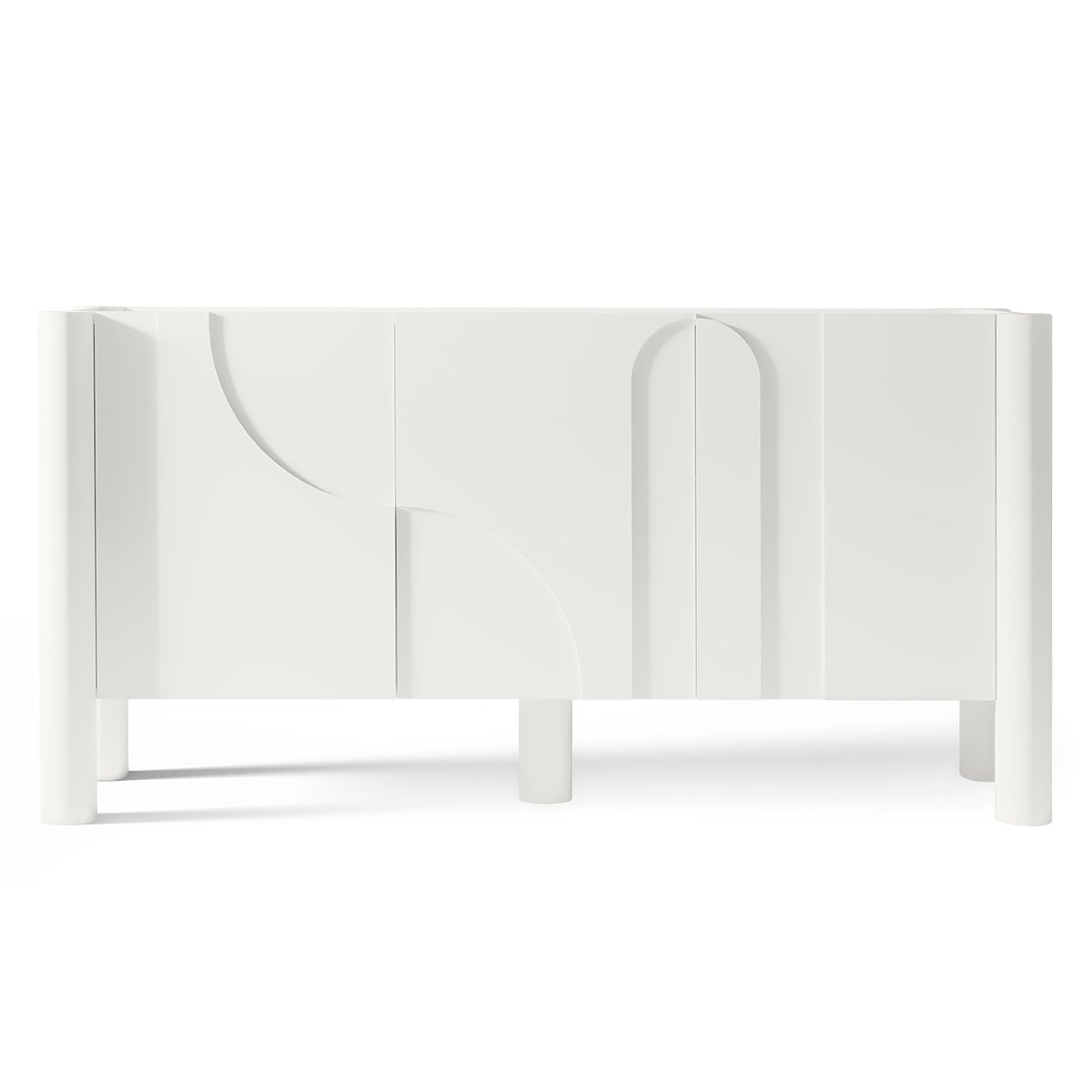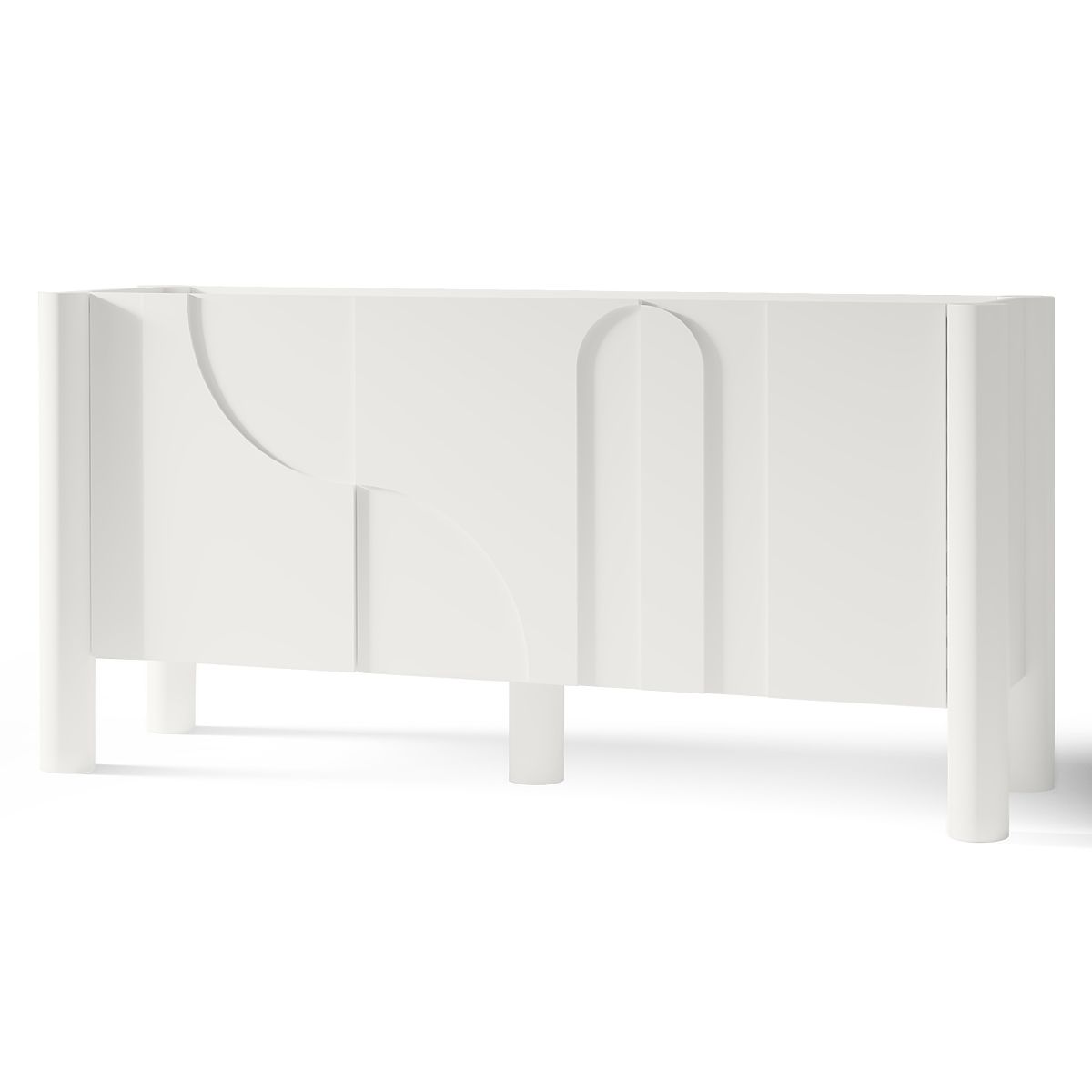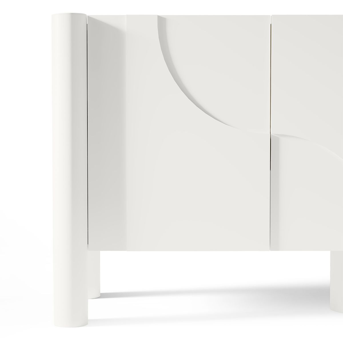 Bijela komoda Lunaria s trodijelnim urezbarenim prednjim dijelom. .. više