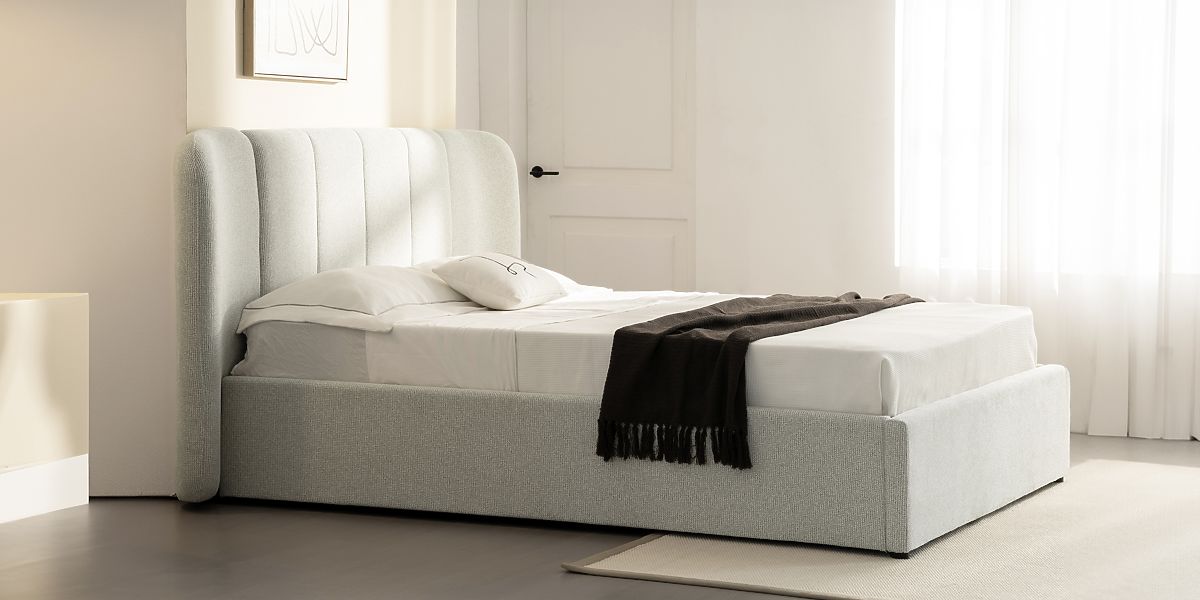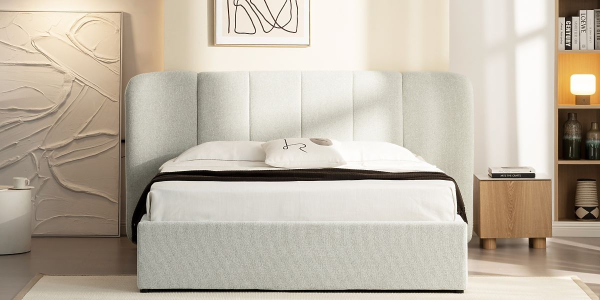 Tapecirani krevet Snoovia s podnicom i spremištem, svijetlo bež. .. više
