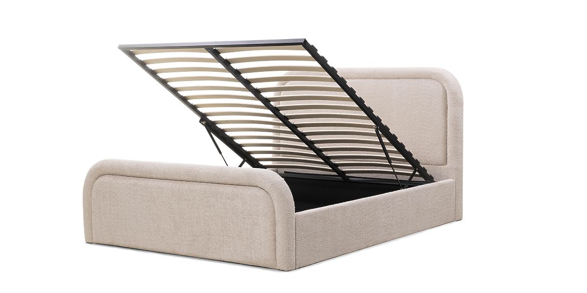 Tapecirani krevet Ovoid 140x200 cm, s podnicom i spremištem, zaobljen, bež