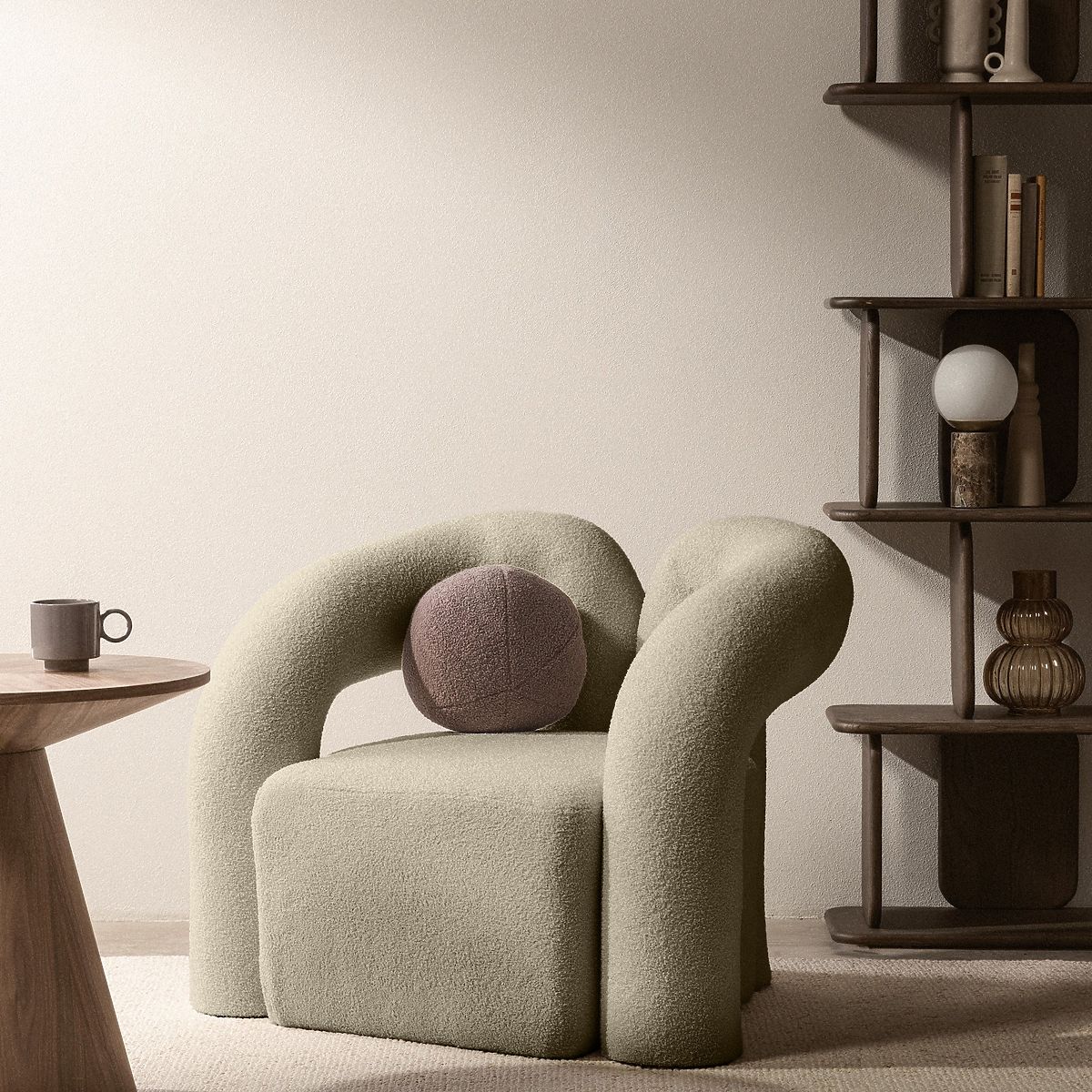 Fotelja Merry nudi stil i udobnost s elegantnim smeđim boucle tkaninom. .. više
