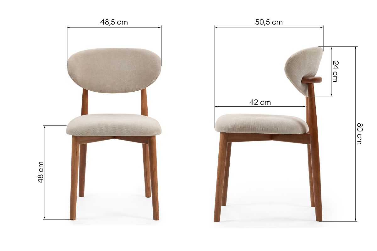 Tapecirana stolica s bež tkaninom i svijetlim orahovim nogama. .. više